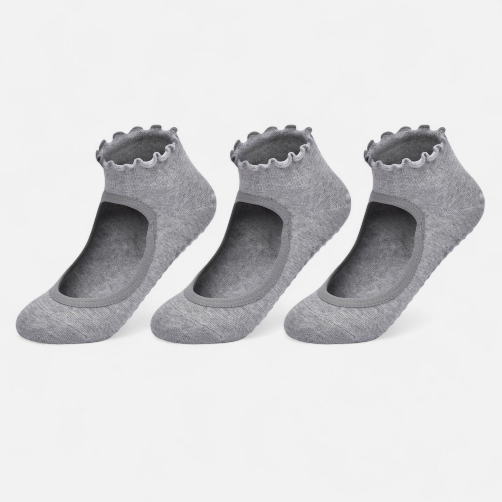 3-Pack Non-Slip Ballet Cut Ankle Socks with Ruffled Trim and Grip Soles for Yoga or Daily Wear