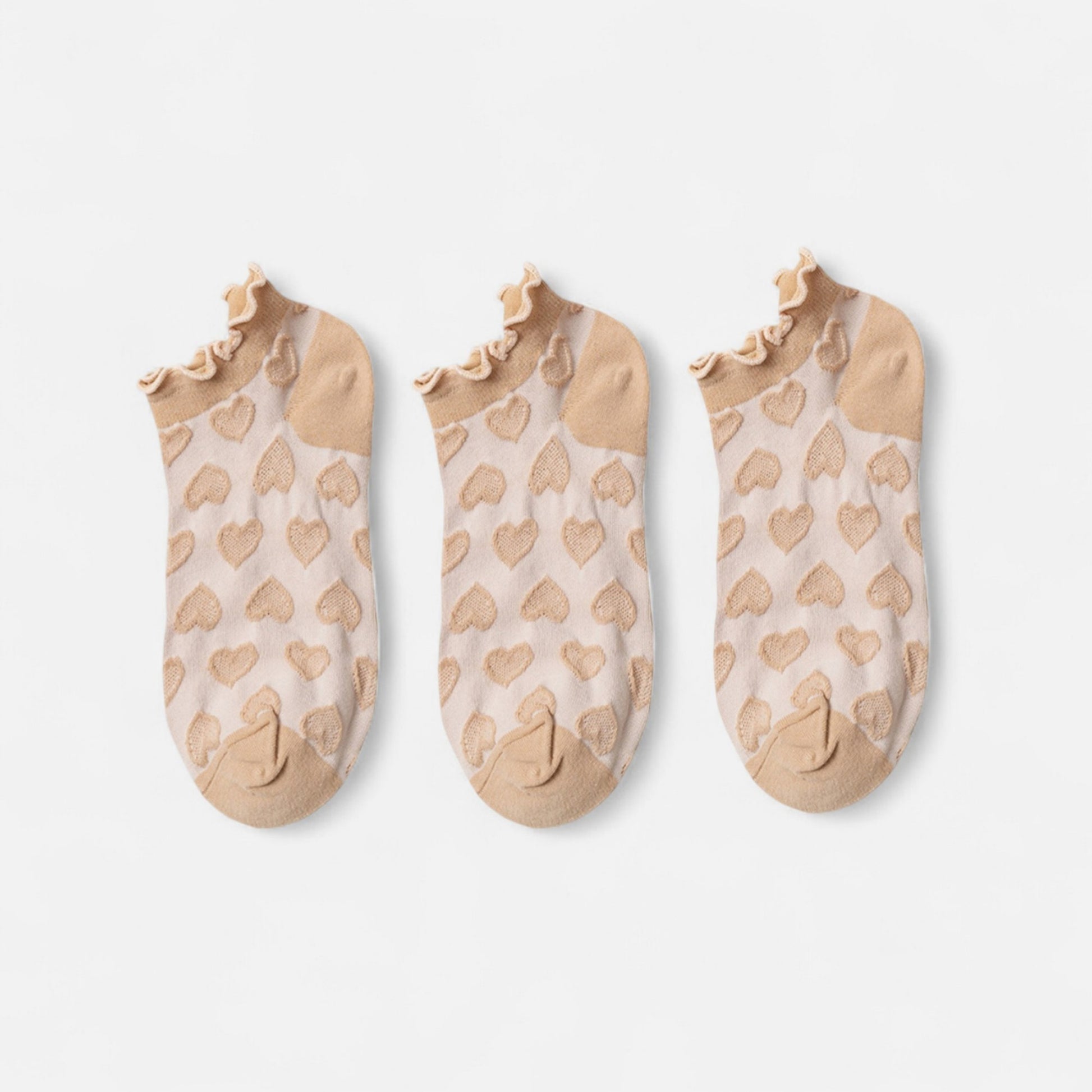 3-Pack Heart Knit Ankle Socks with Ruffle Trim and Soft Stretchy Fabric