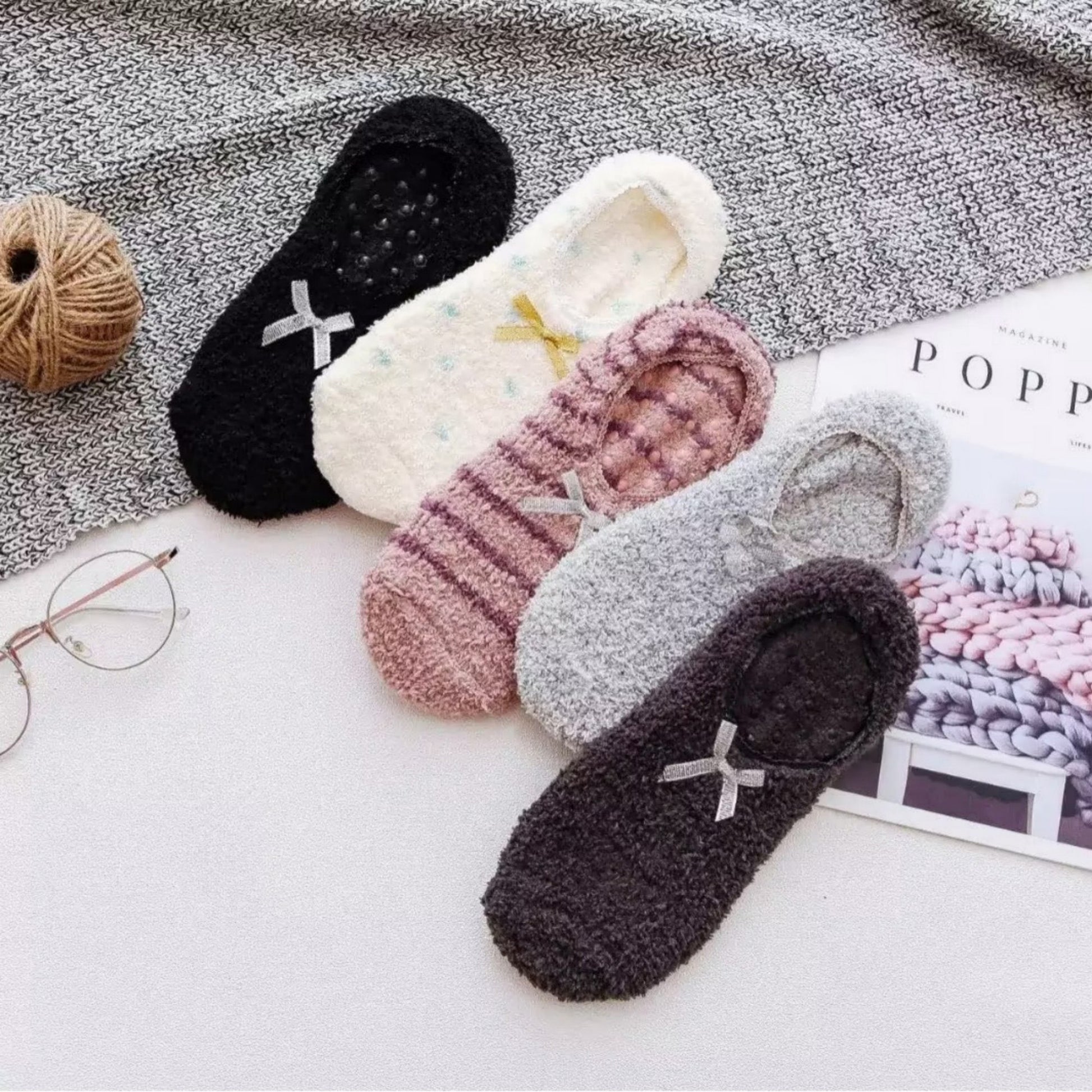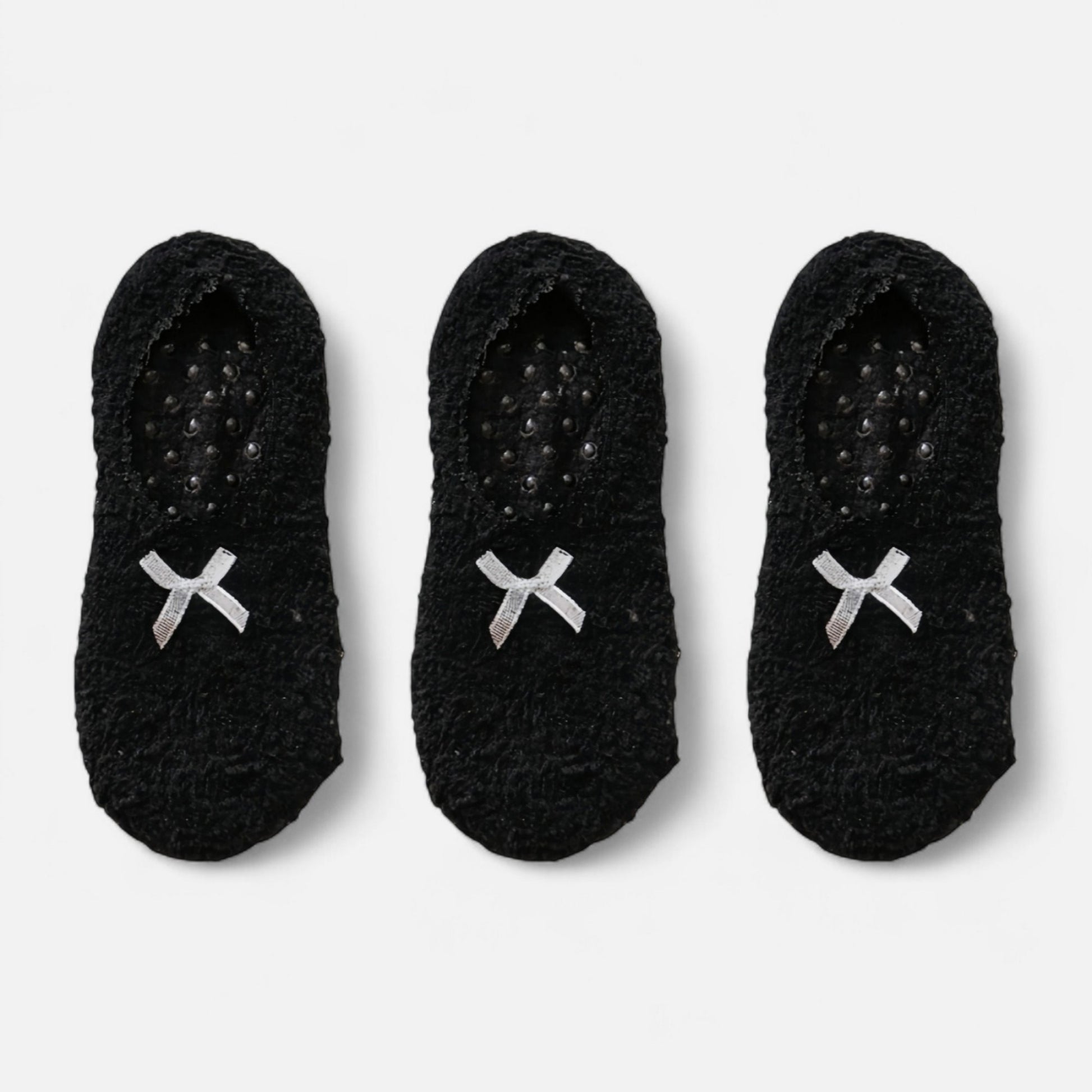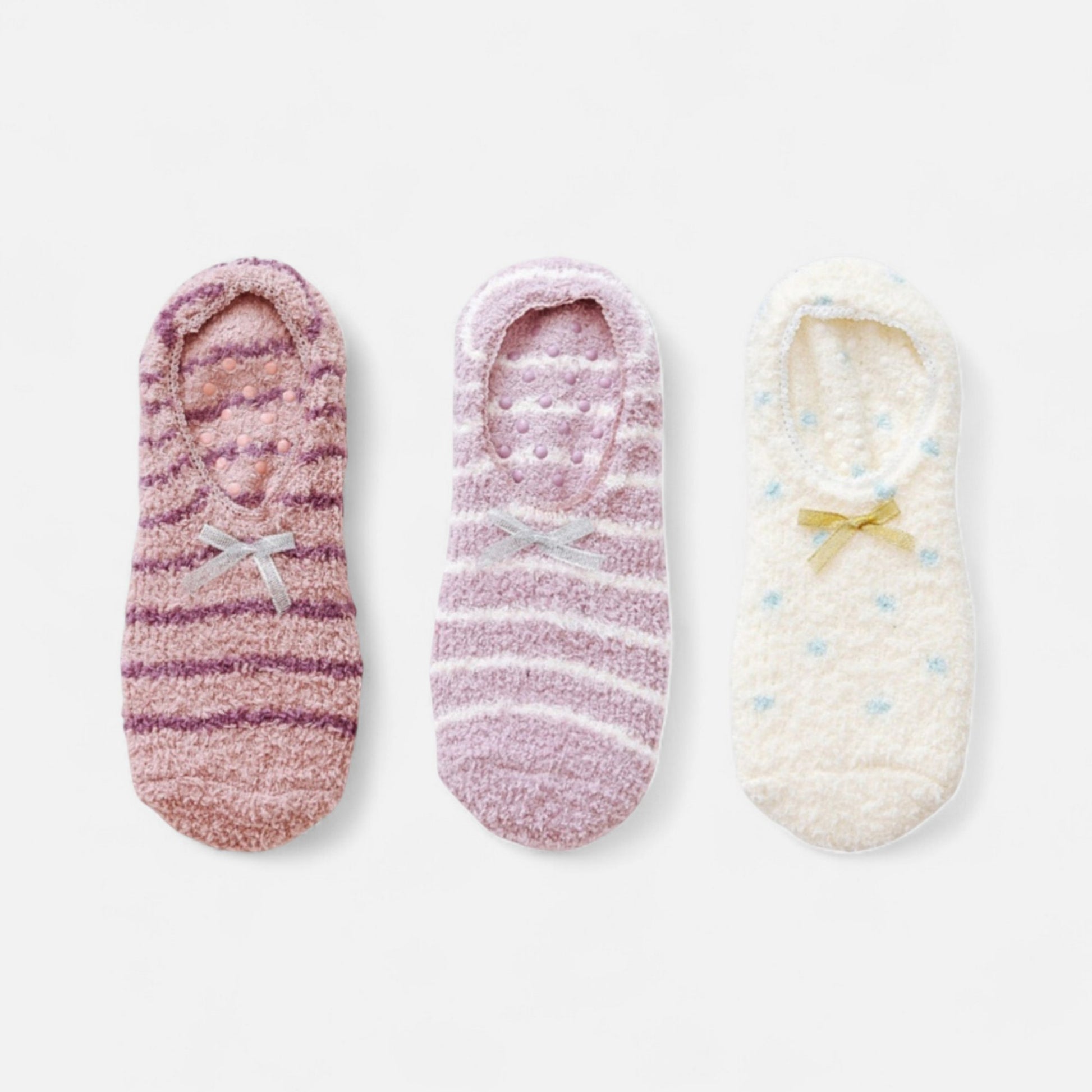 3-Pack Non-Slip Plush Fuzzy Slipper Socks with Fabric Bow and Grip Bottoms