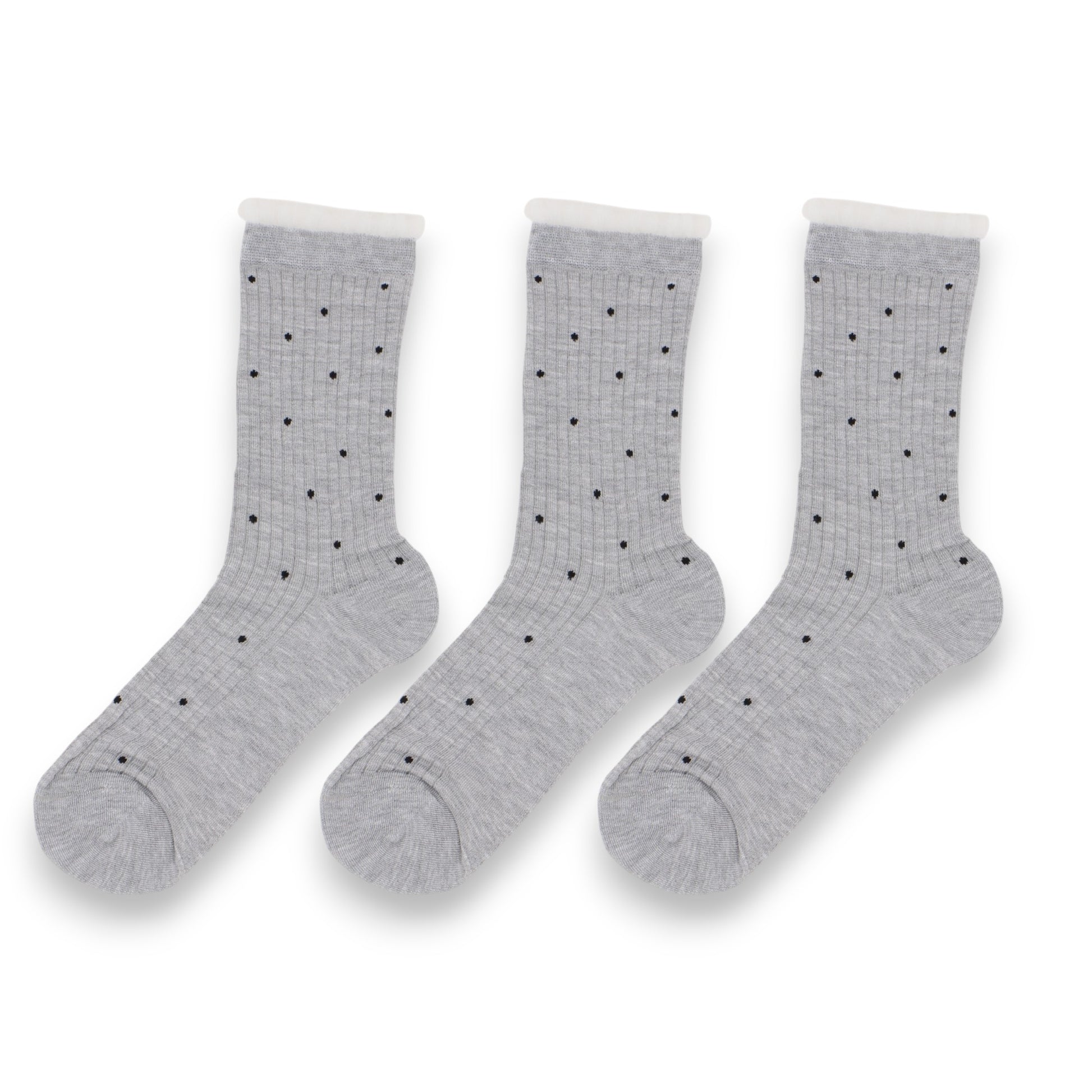 3-Pack Women's Crew Socks with Ribbed Texture and Allover Polka Dot Pattern