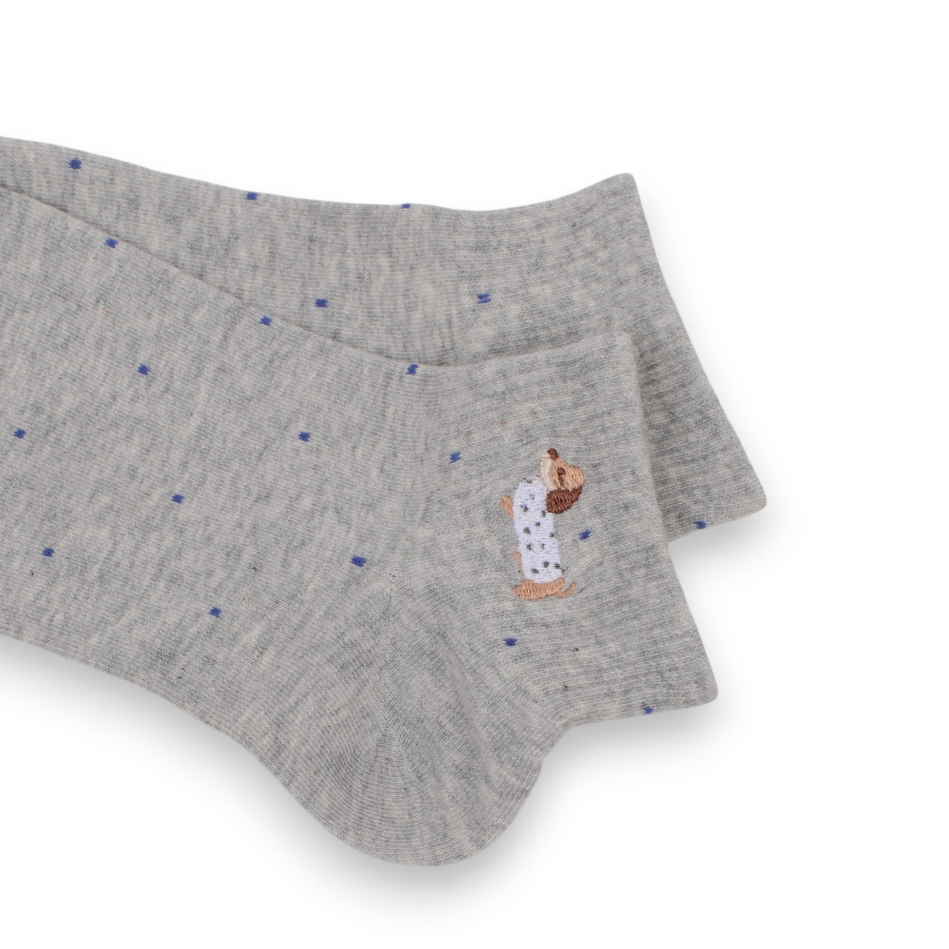 3-Pack Women's Cotton Ankle Socks with Embroidered Dog and Dotted Knit Pattern
