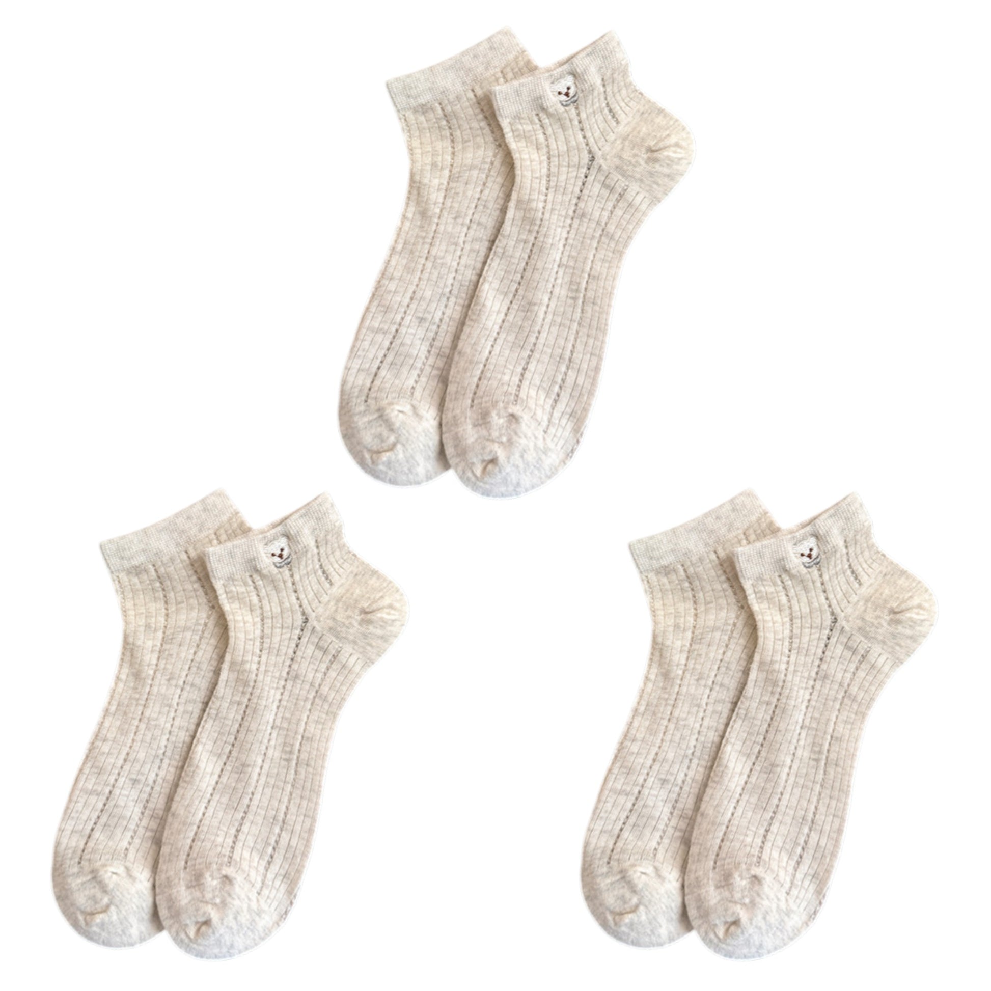 3-Pack Women's Ribbed Cotton Ankle Socks with Embroidered Bear and Moisture-Wicking Comfort