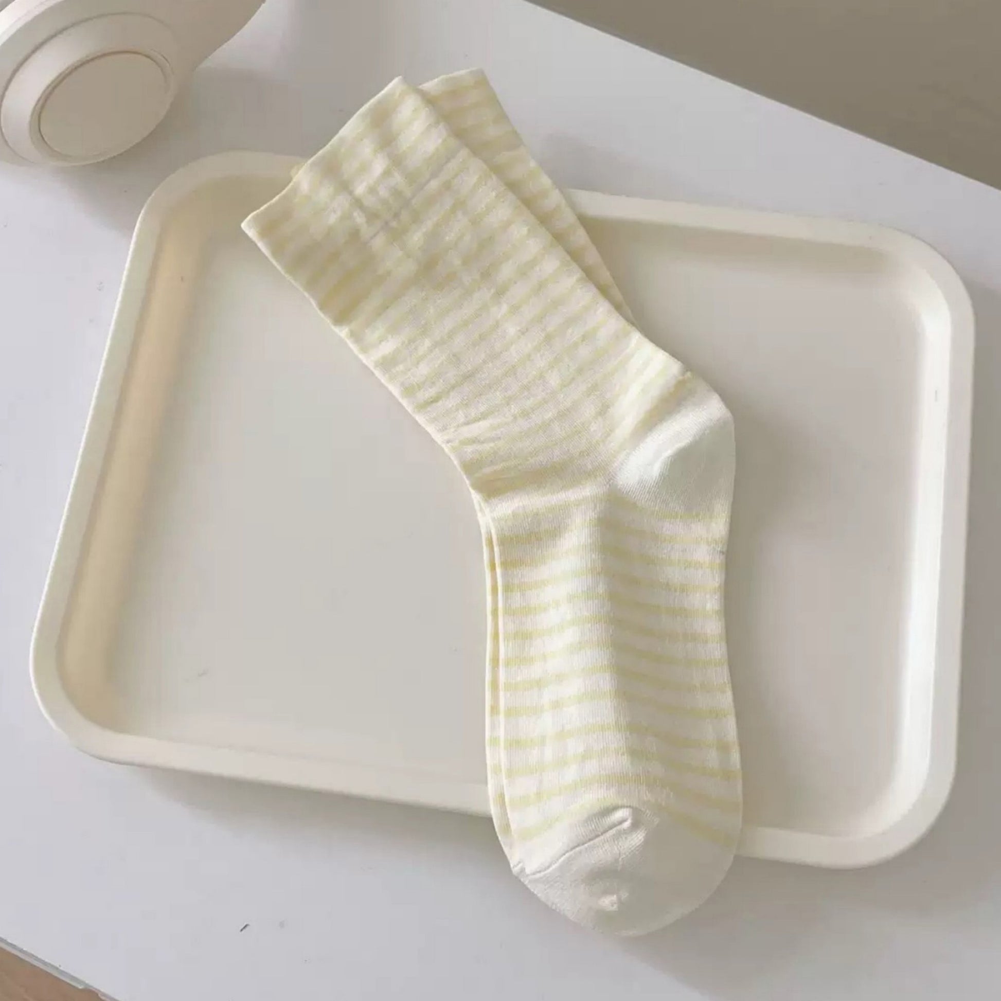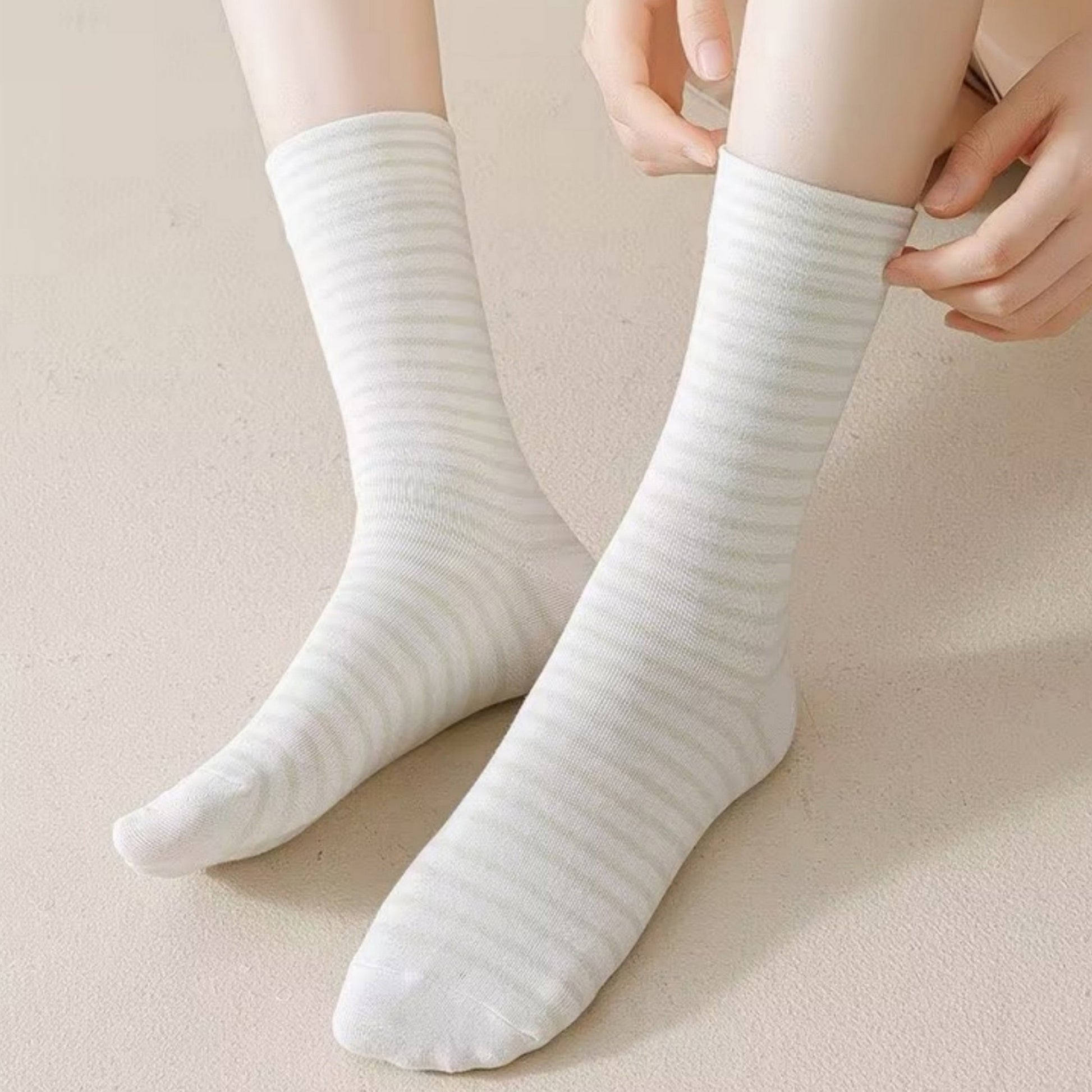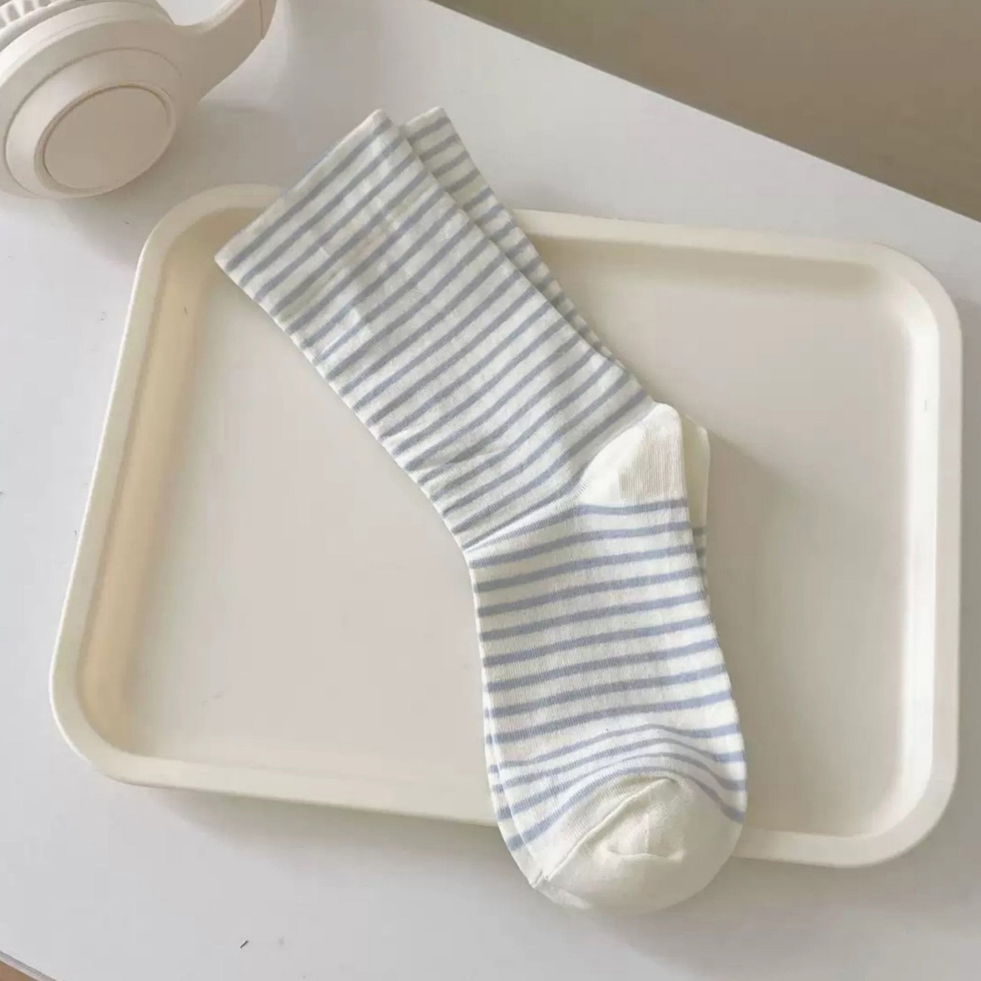 3-Pair Striped Crew Socks Set Lightweight Knit with Soft Stretch and Modern Minimalist Style