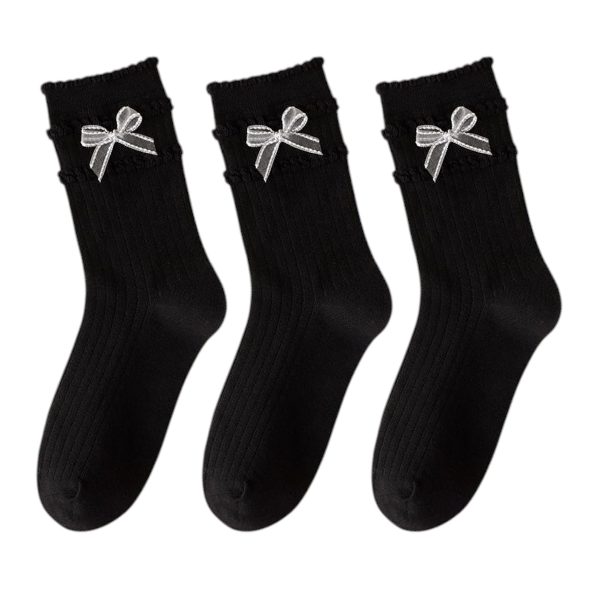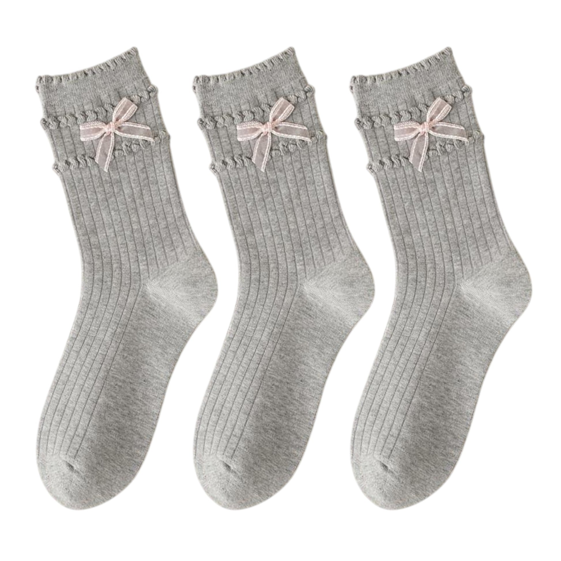 3-Pack Women's Cotton Crew Socks with Ribbed Knit, Satin Bow Accen
