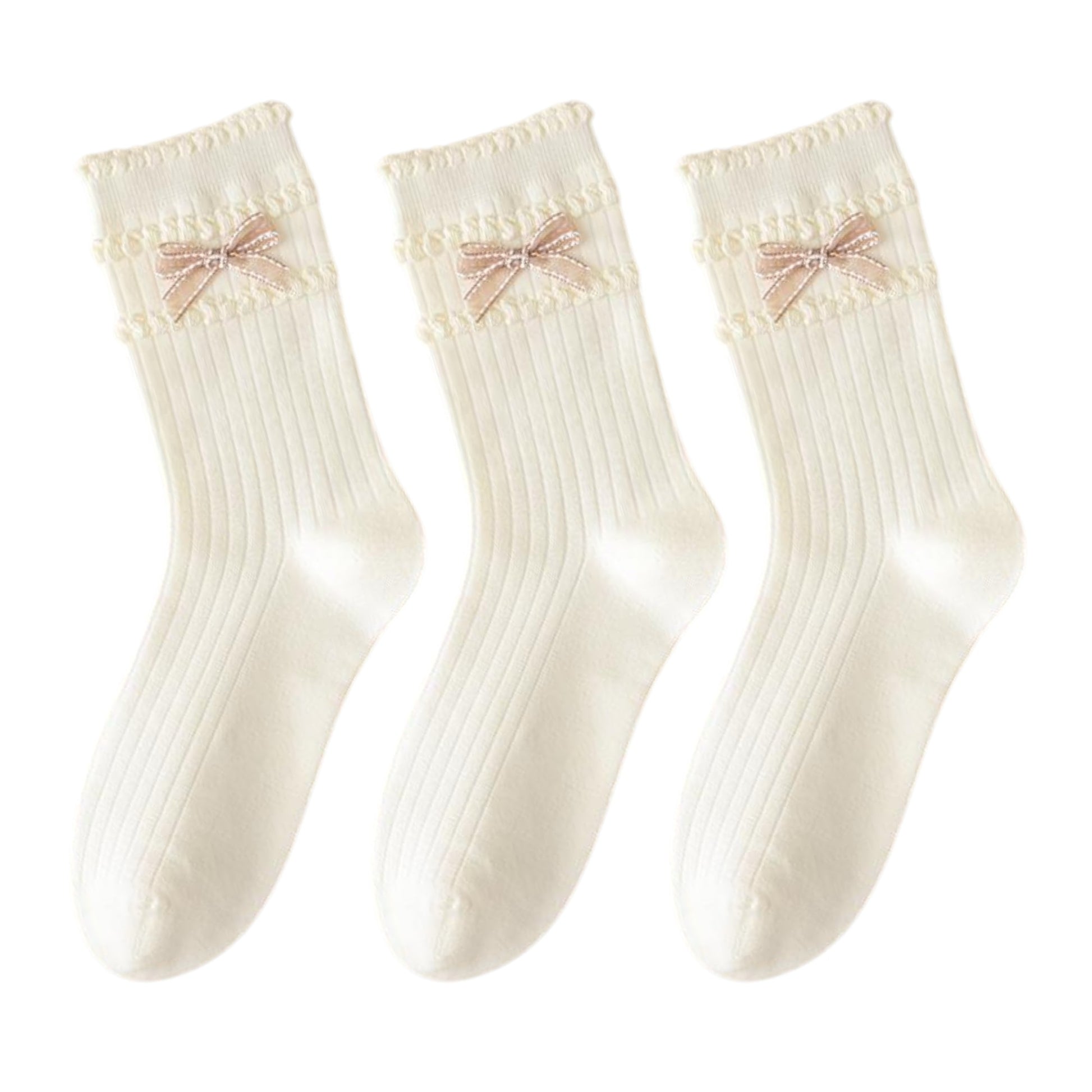The?Anna-Kaci?3-pack?women¡¯s?crew?socks?are?made?from?soft,?breathable?cotton?and?feature?a?ribbed?knit?design?with?delicate?lace?trim?and?a?satin?bow?accent.?Perfect?for?adding?comfort?and?charm?to?everyday?outfits,?they?are?available?in?multiple?color?options.