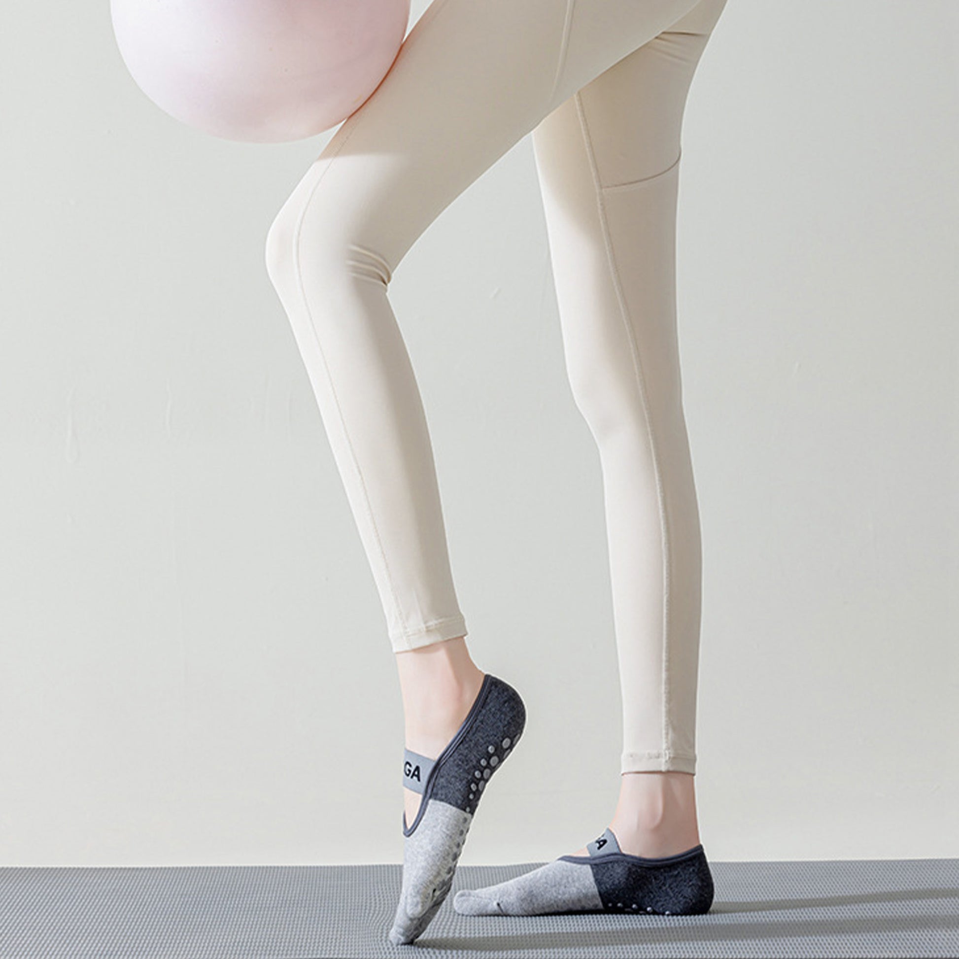 3 Pairs Women's Cotton Sports Five Toe Anti Slip Fitness Yoga Socks with Elastic Strap