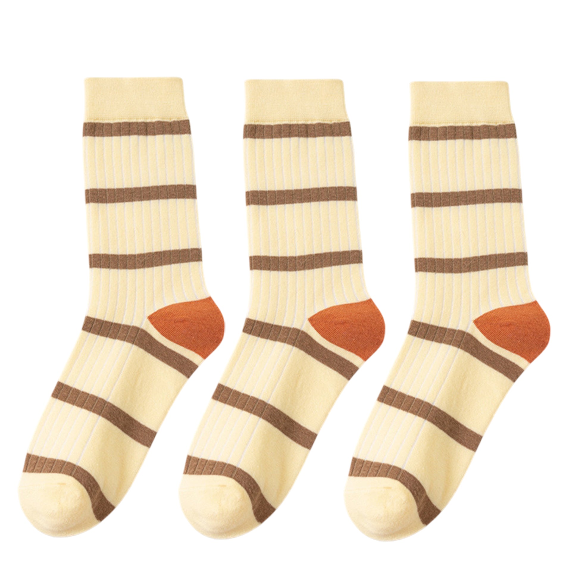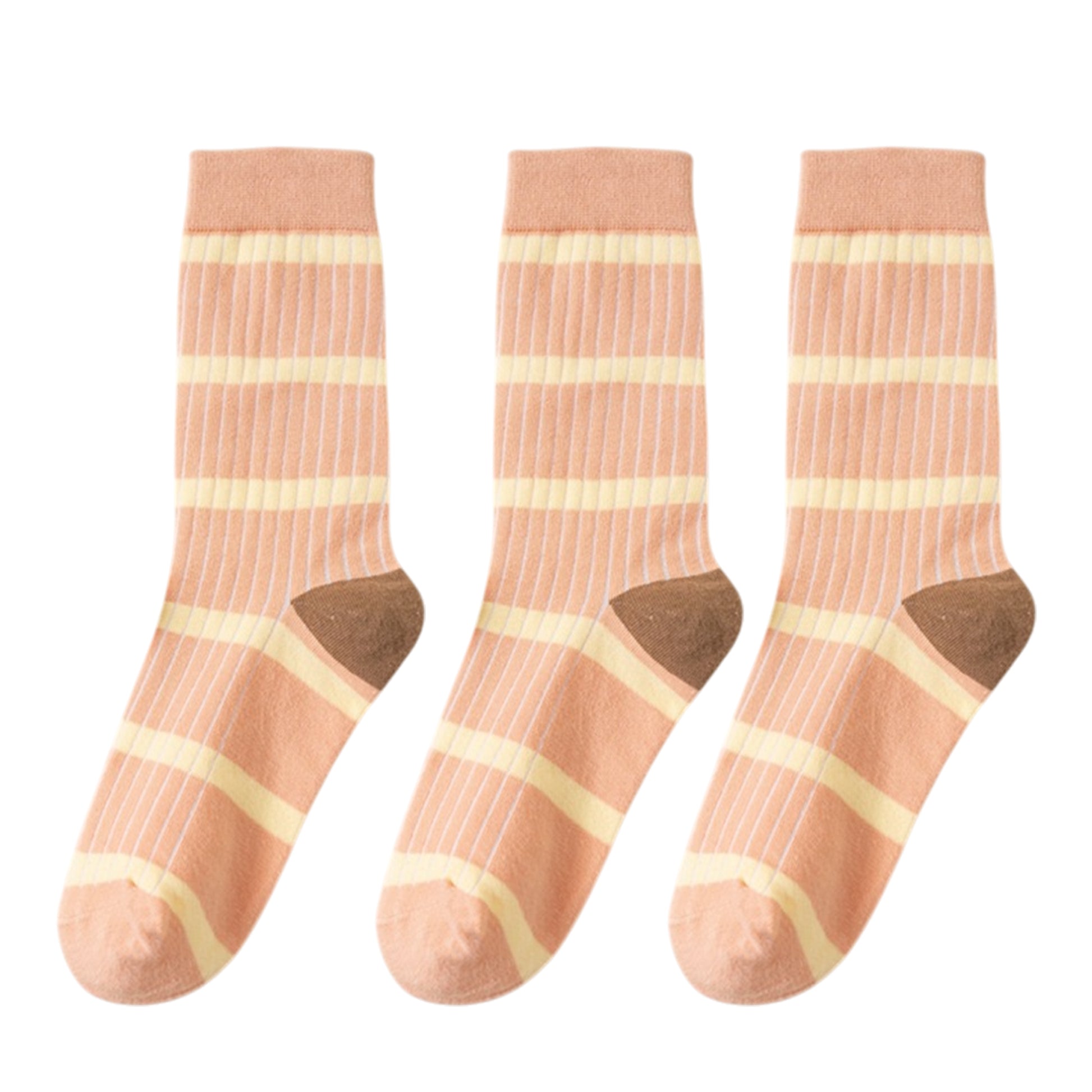 3 Pairs Women's Mid-Calf Striped Casual Cotton Socks