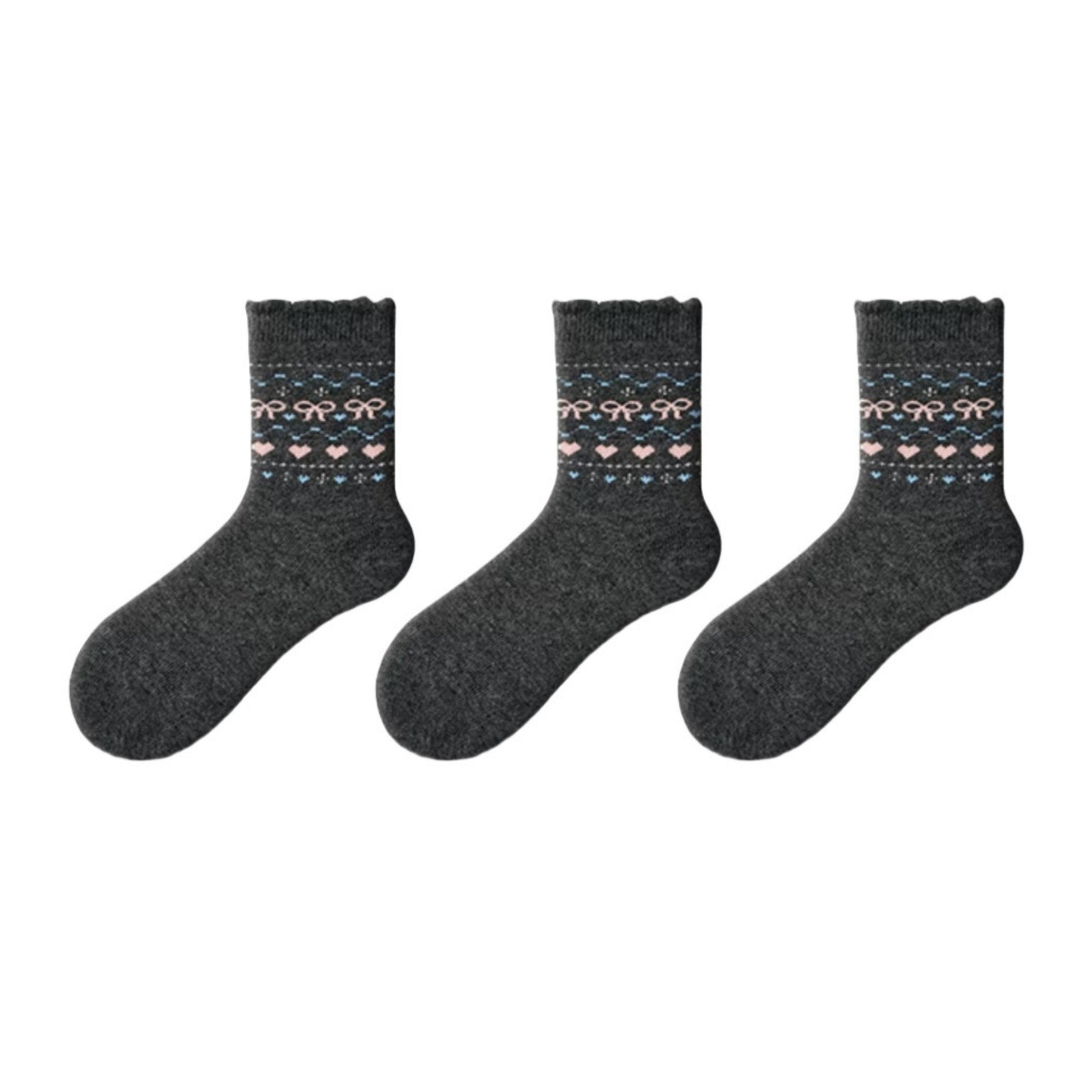 3-Pair Pack Crew Socks with Heart and Bow Pattern Knit Design Perfect for Gifting and Everyday Wear
