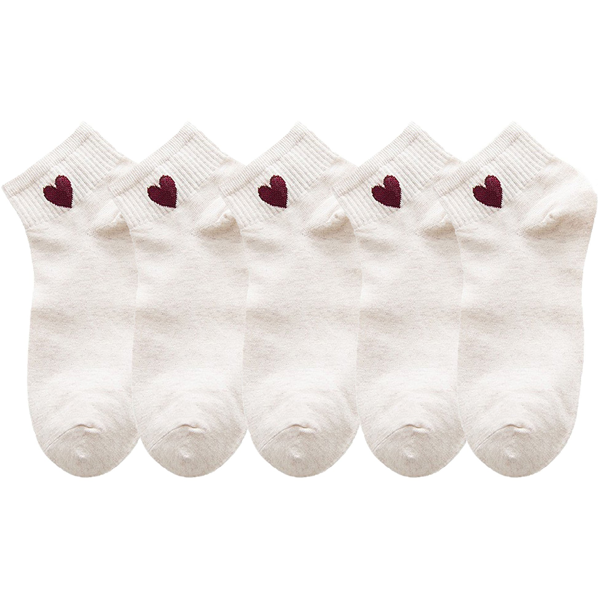 5-Pair Ankle Socks with Ribbed Cuff and Embroidered Heart Accent for Everyday Comfort and Style
