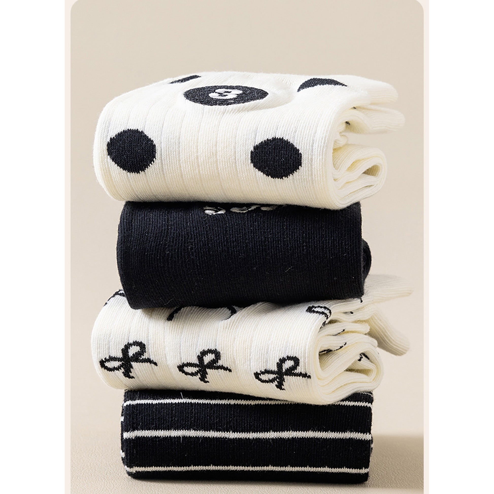 The 3 Pairs Women's Casual Crew Socks set features a fun mix of playful patterns including stripes, polka dots, and bow embroidery. Made with soft, breathable fabric, these socks provide all-day comfort while adding a touch of personality to any outfit. Their classic crew length makes them versatile to wear with loafers, sneakers, or boots. Designed for both style and practicality, this set offers a charming variety that brings a fashionable twist to everyday essentials.