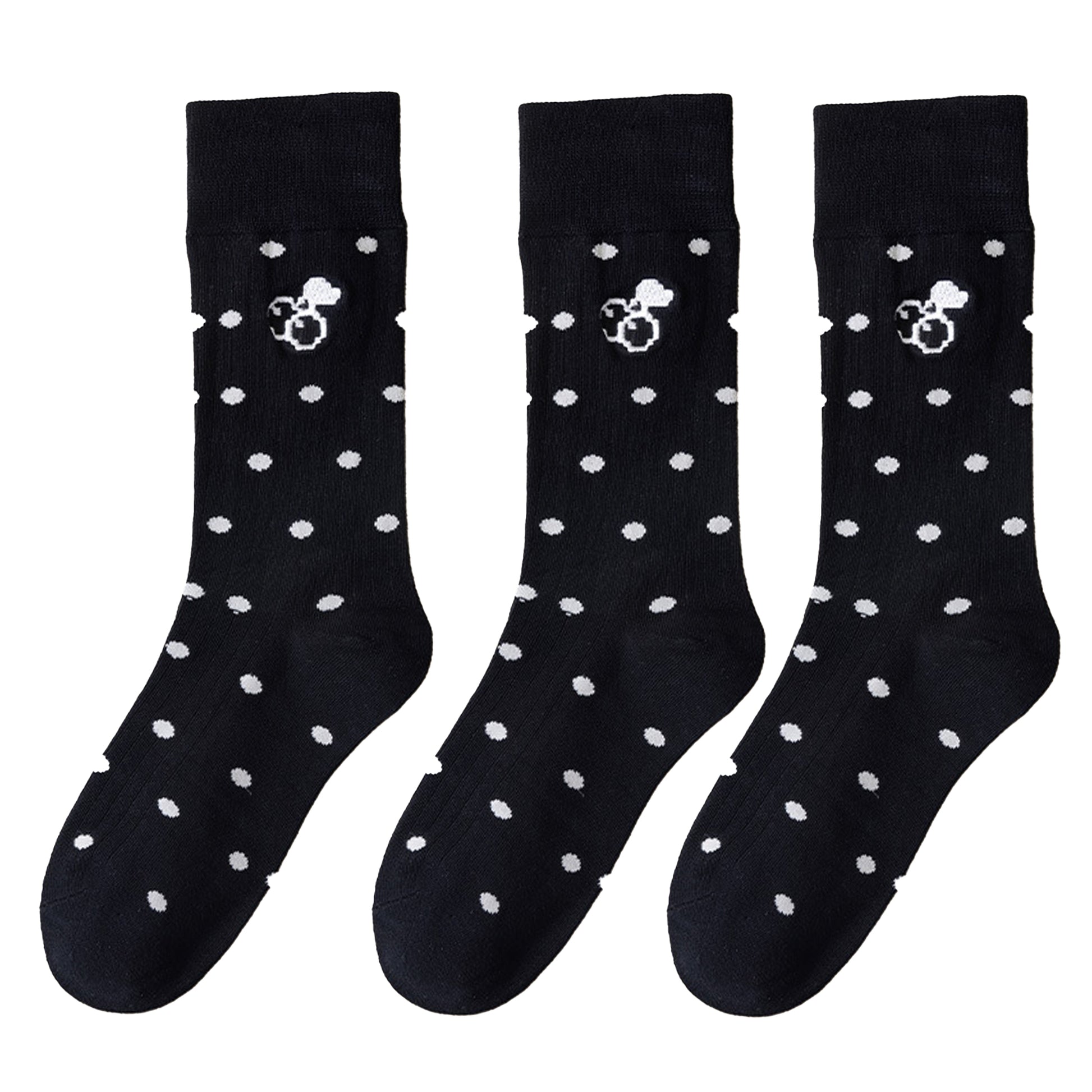 3 Pairs Women's Casual Crew Socks Assorted Patterns Striped Polka Dot and Bow Embroidery