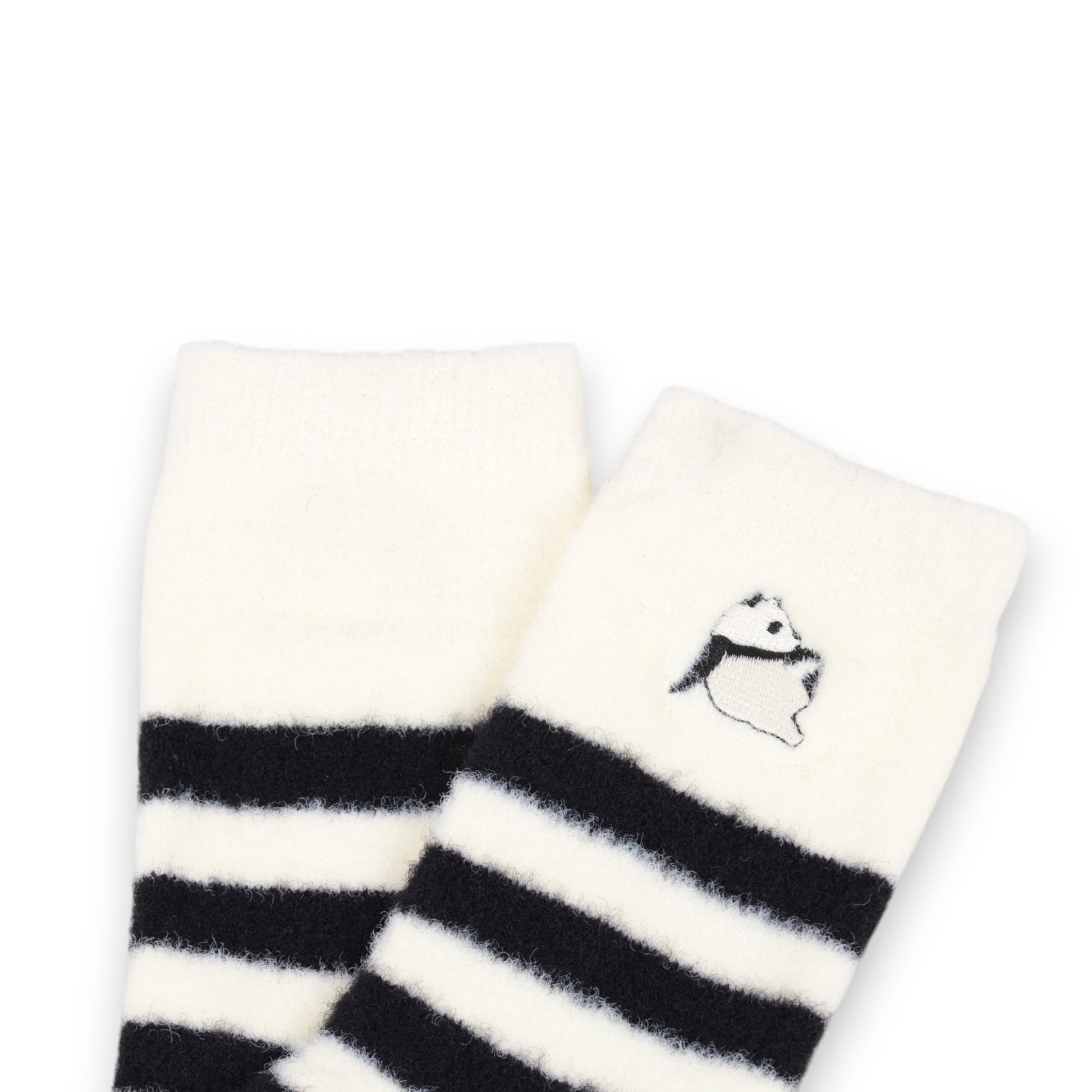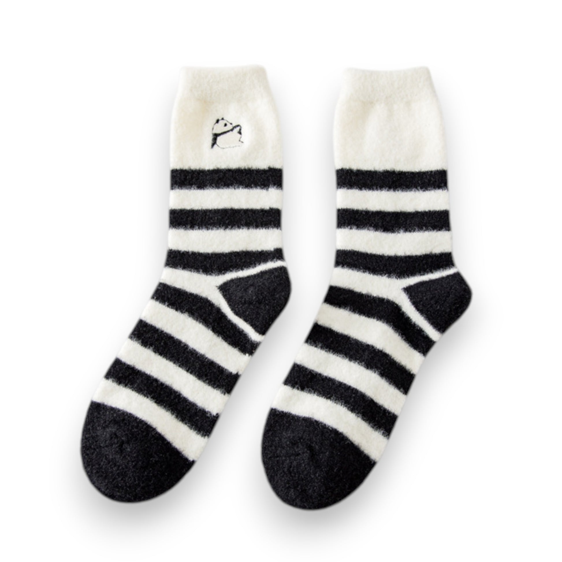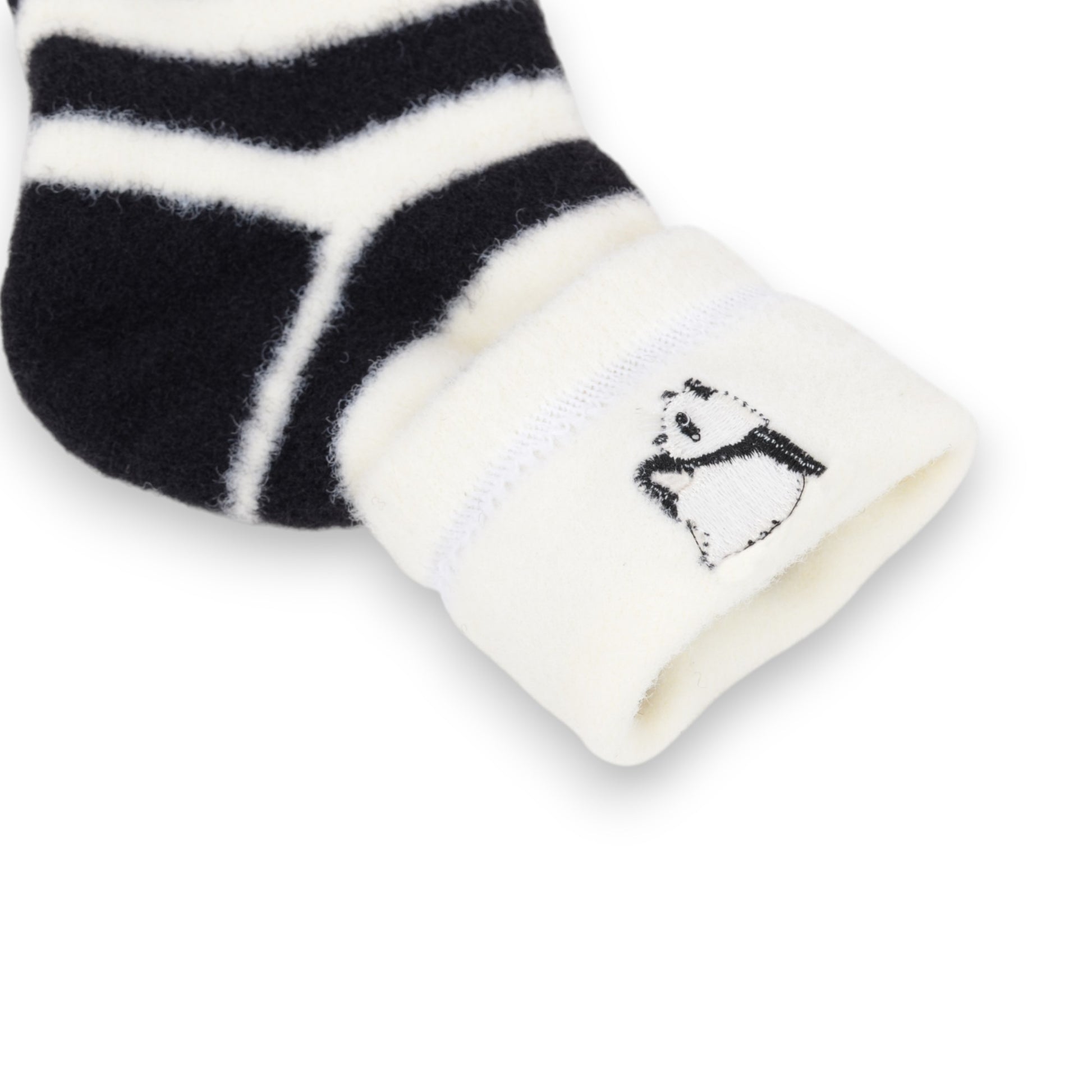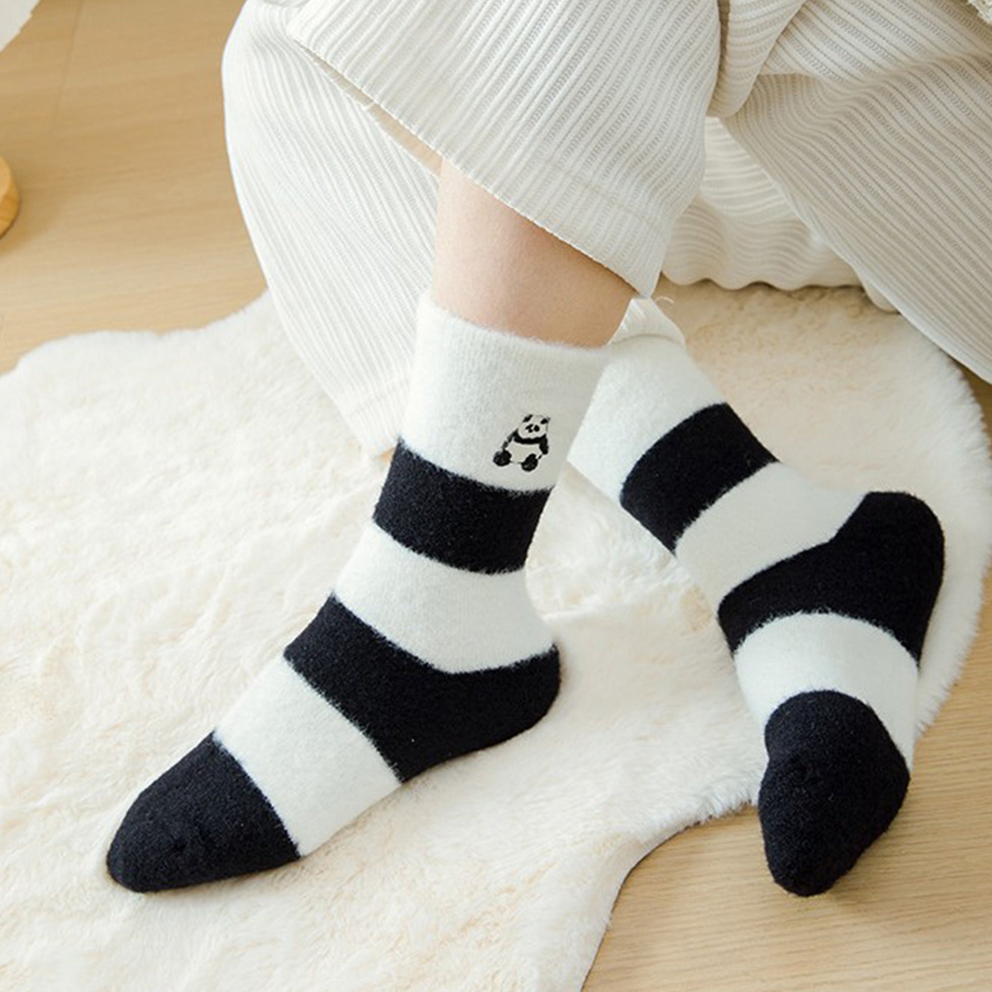 3-Pair Plush Home Socks Striped Panda Design Cozy Crew Style for Everyday Comfort