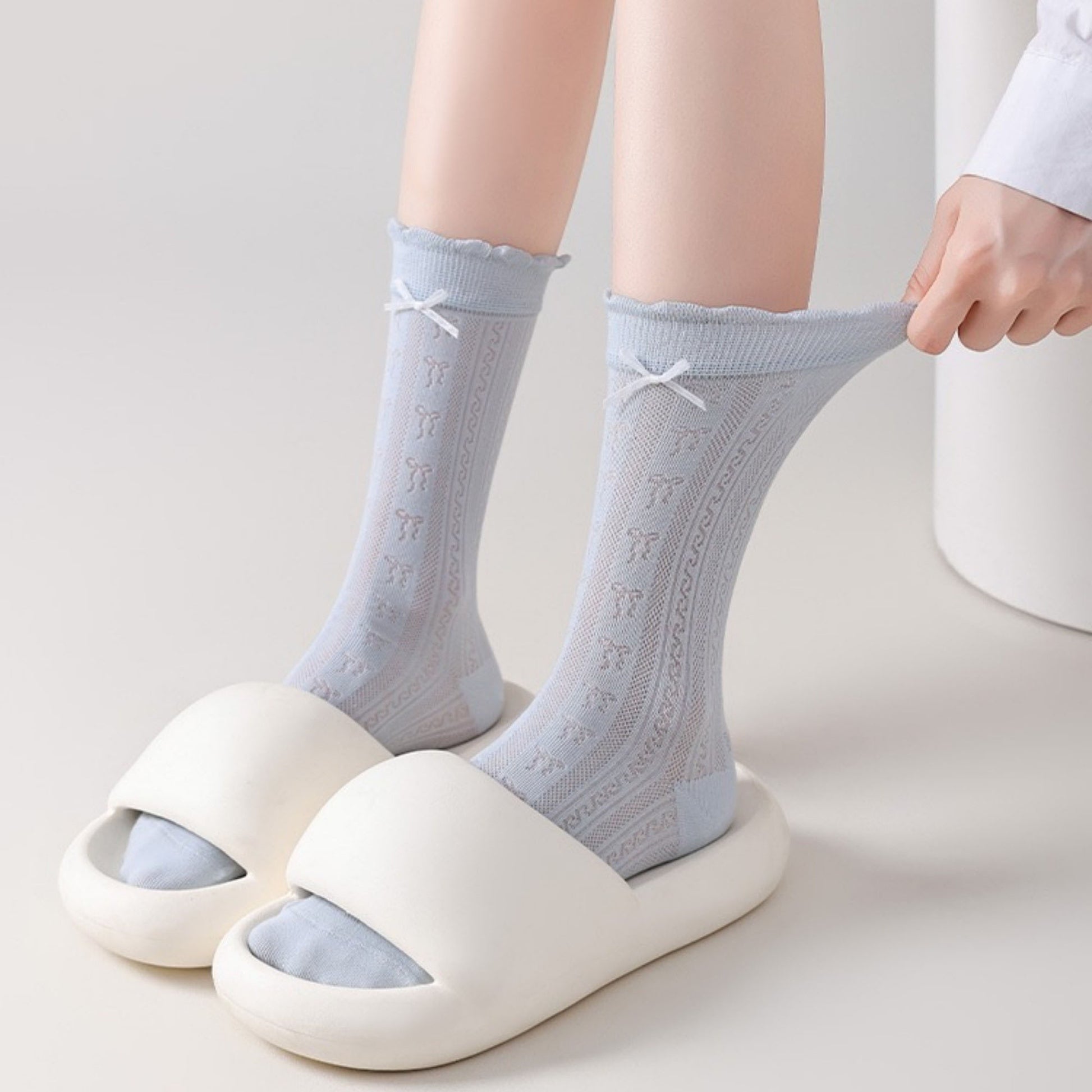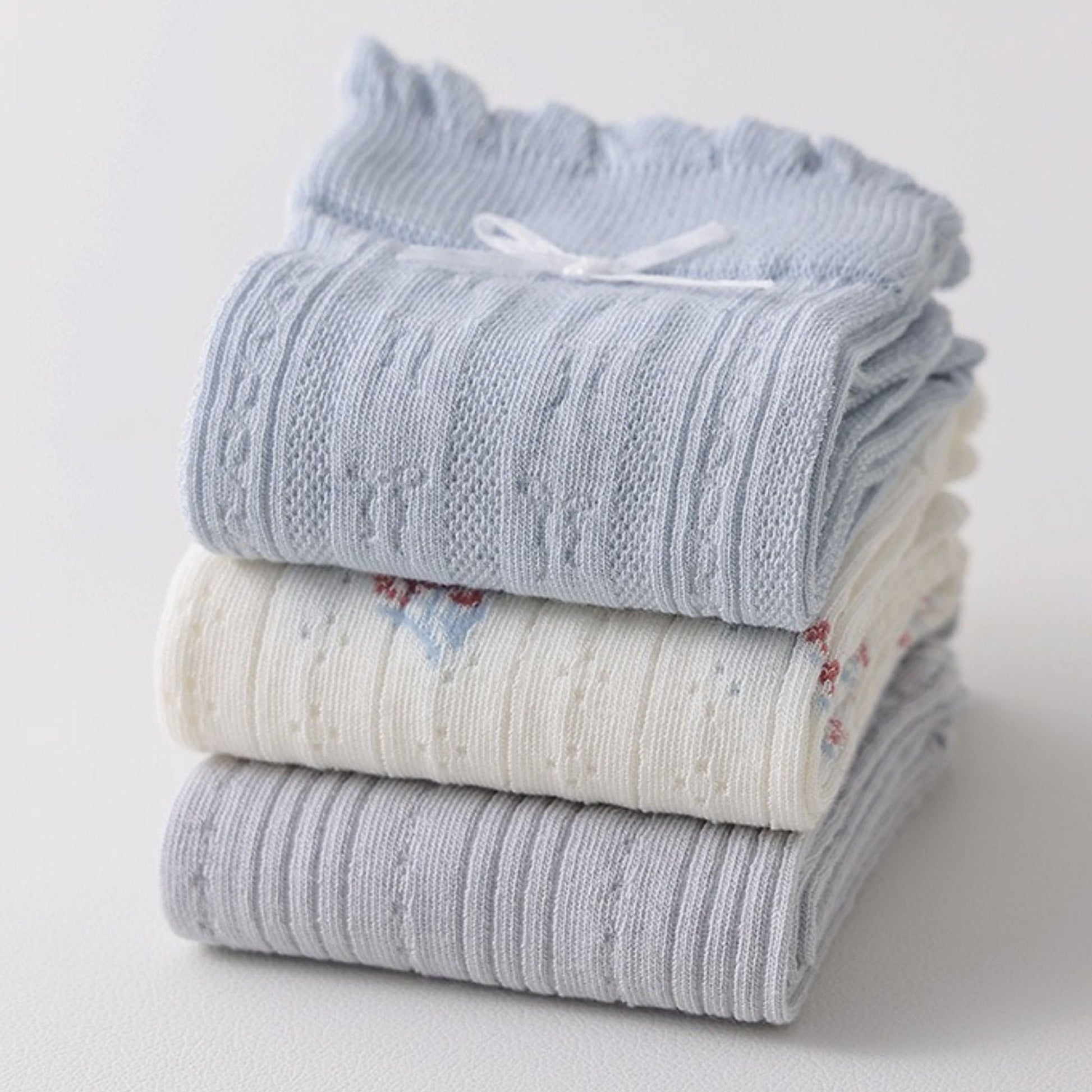 3 Pair Pack Quarter Socks with Knit Patterns Lace Trim and Bow Detail