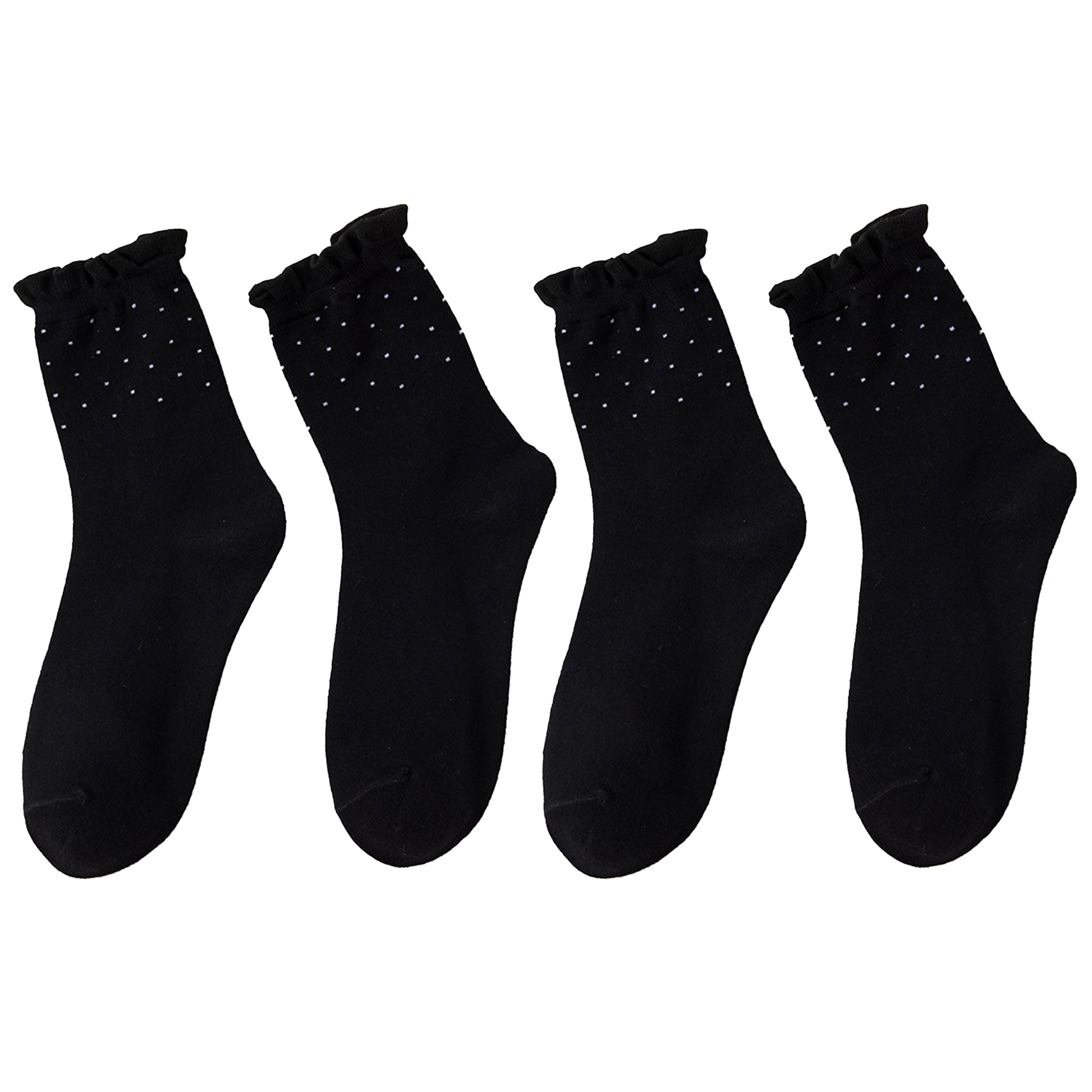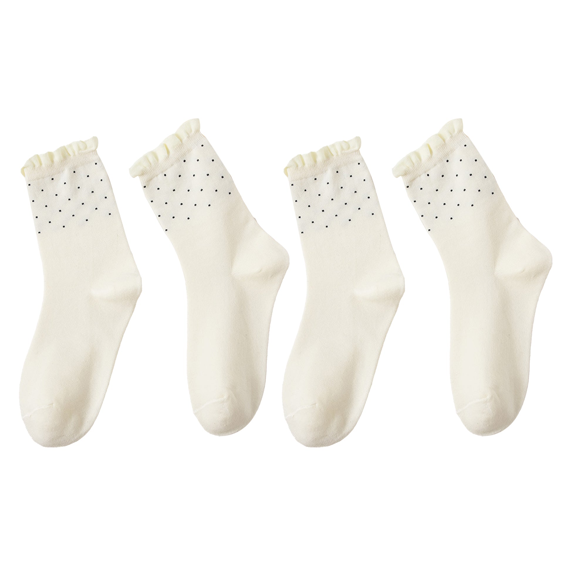 4 Pairs Knit Socks with Polka Dot Design Ruffle Edge Ribbed Cuffs Soft Stretch Fabric