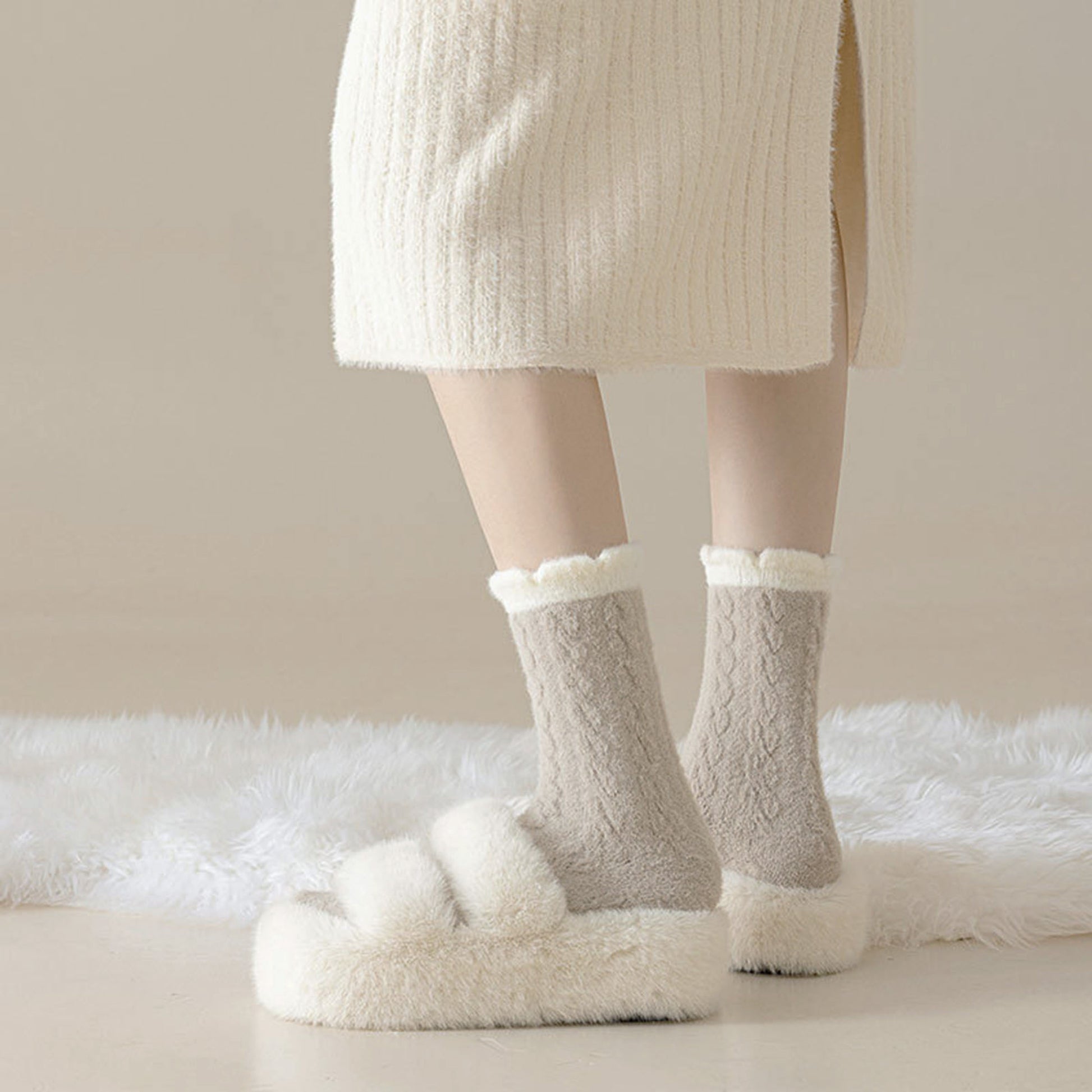 3 - Pack Cable Knit Crew Socks with Soft Textured Fabric and Contrast Cuff Detail