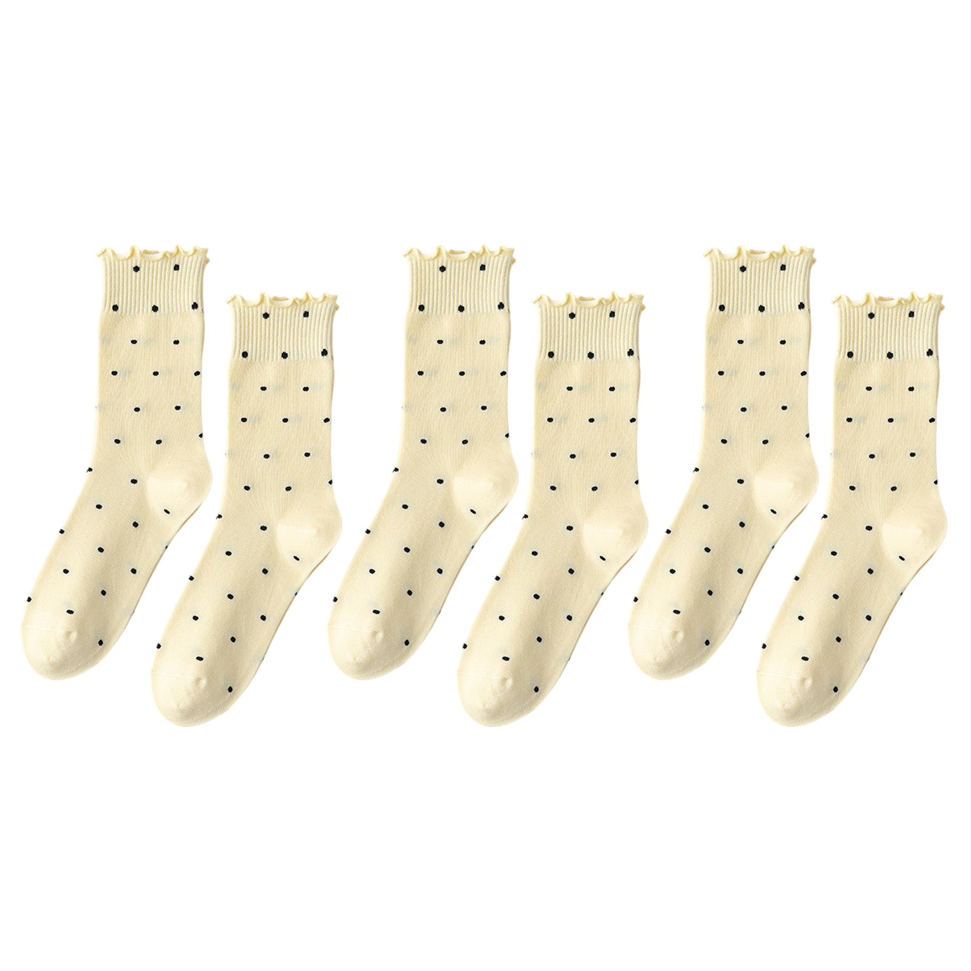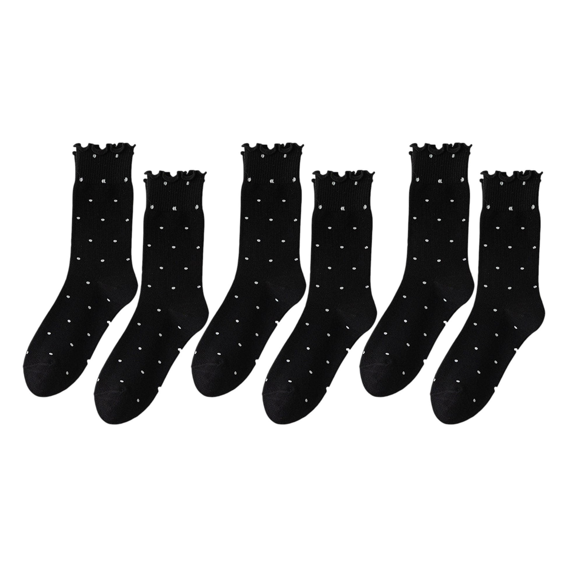 6pk Women's Polka Dot Ankle Socks with Ruffled Cuffs