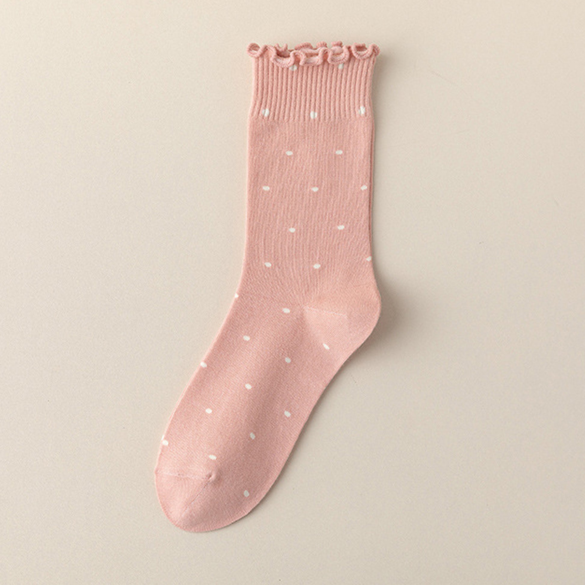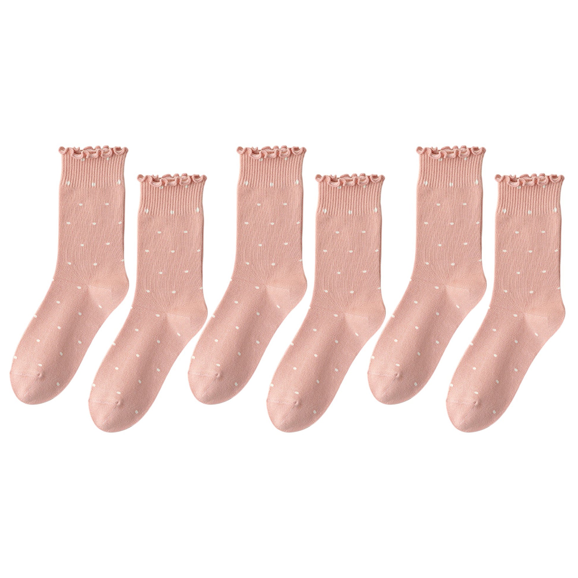 Step into cuteness and comfort with our Women's Polka Dot Ankle Socks featuring charming ruffled cuffs. These socks are the perfect blend of style and comfort, designed to add a touch of whimsy to your day. The light pink color adorned with delicate white polka dots creates an irresistibly cute look that's sure to brighten your mood.
