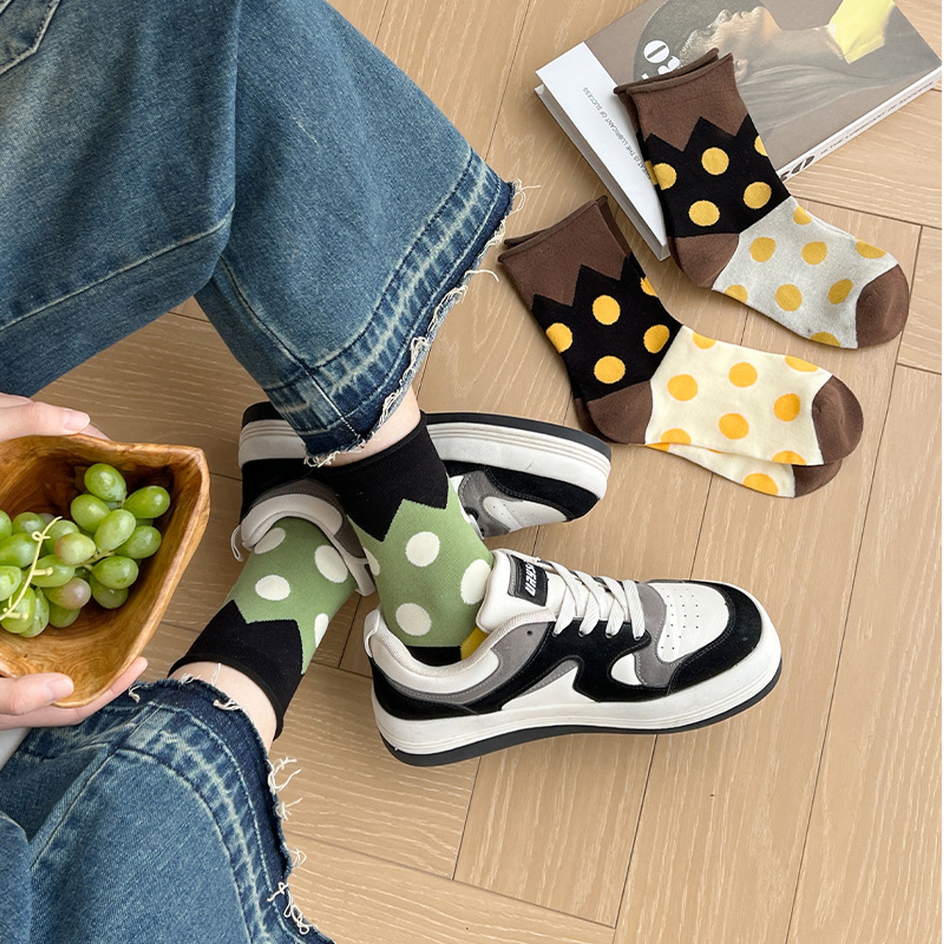 6pk Women's Color - Blocked Polka Dot Cotton Ankle Socks - Trendy Ins - Style Socks