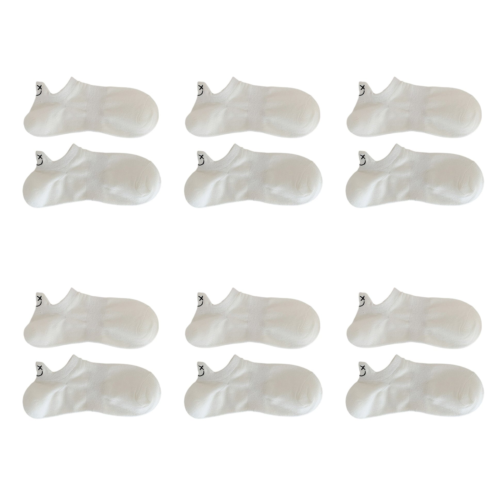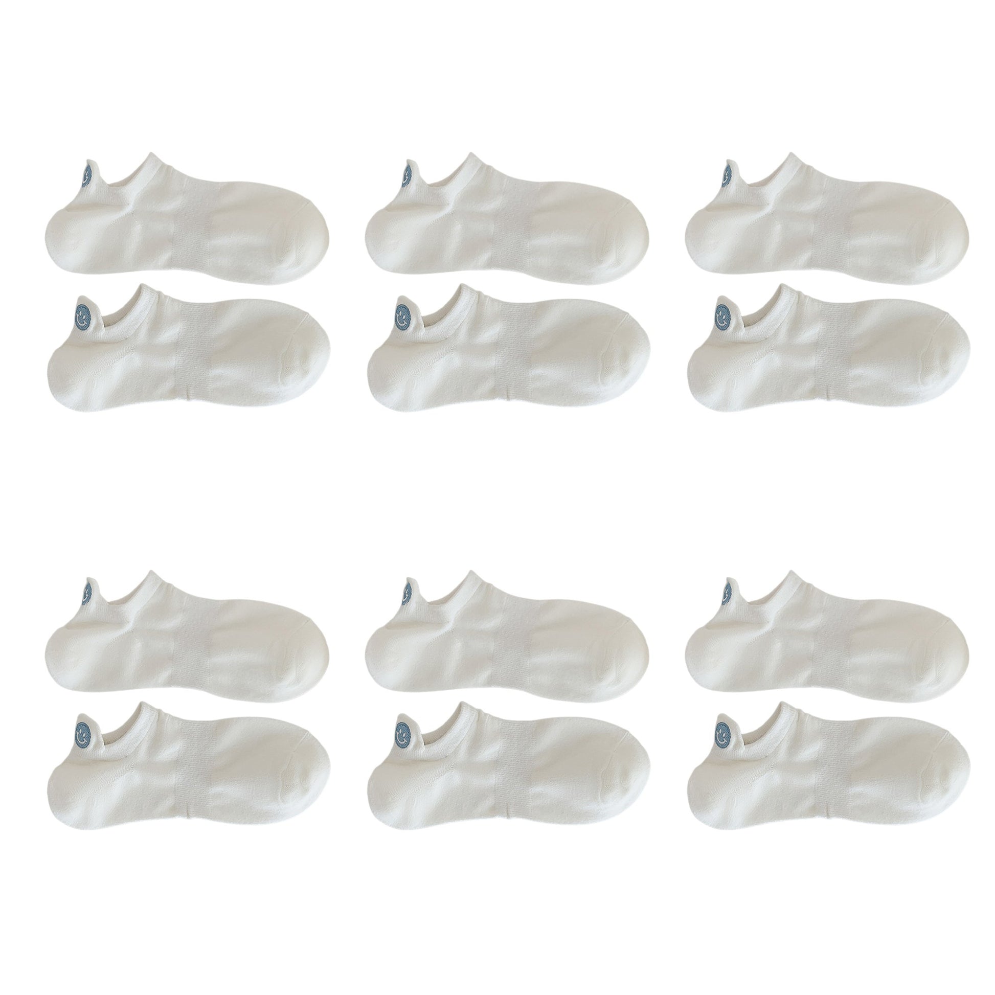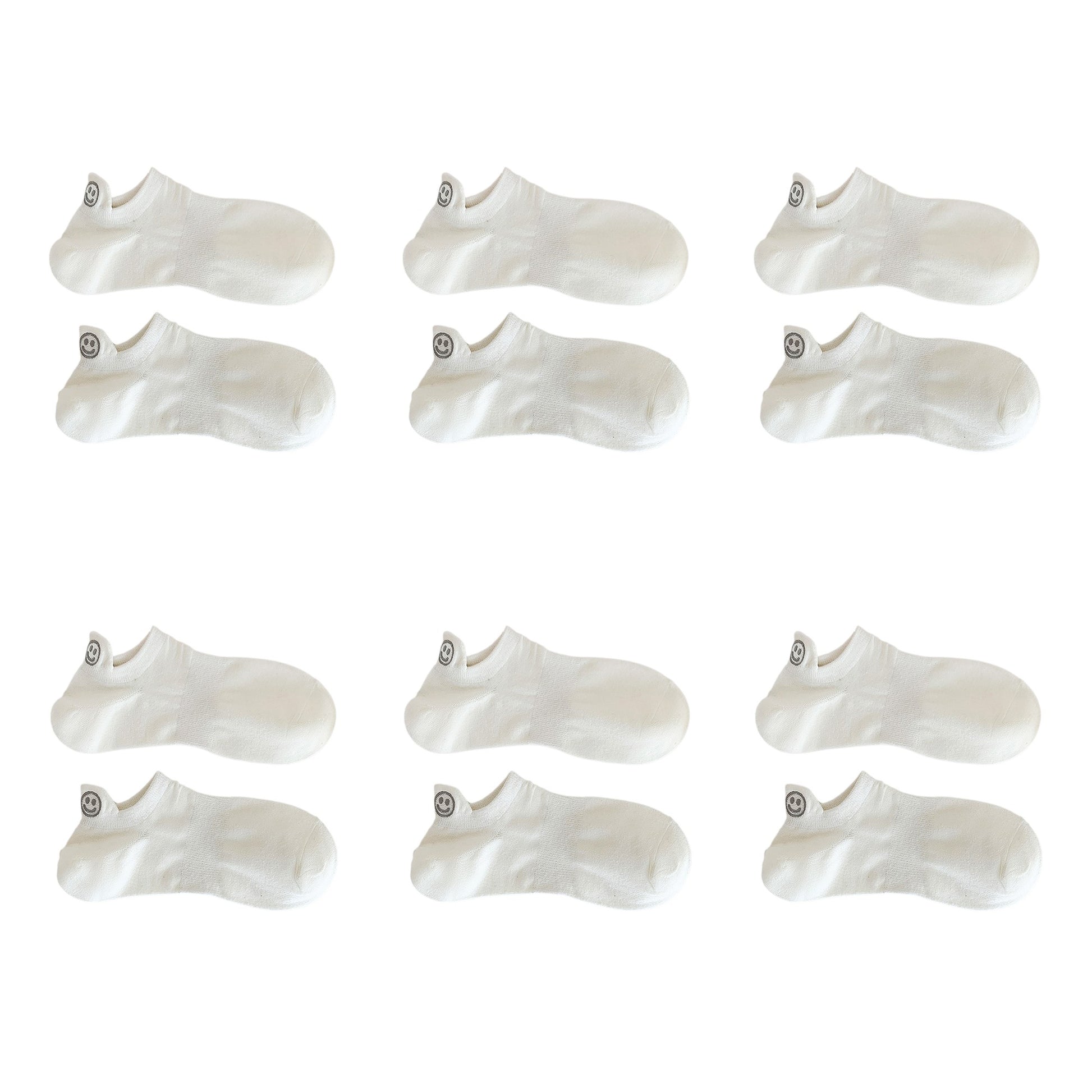 6pk Cotton White No - Show Socks with Smiley Face Embroidery