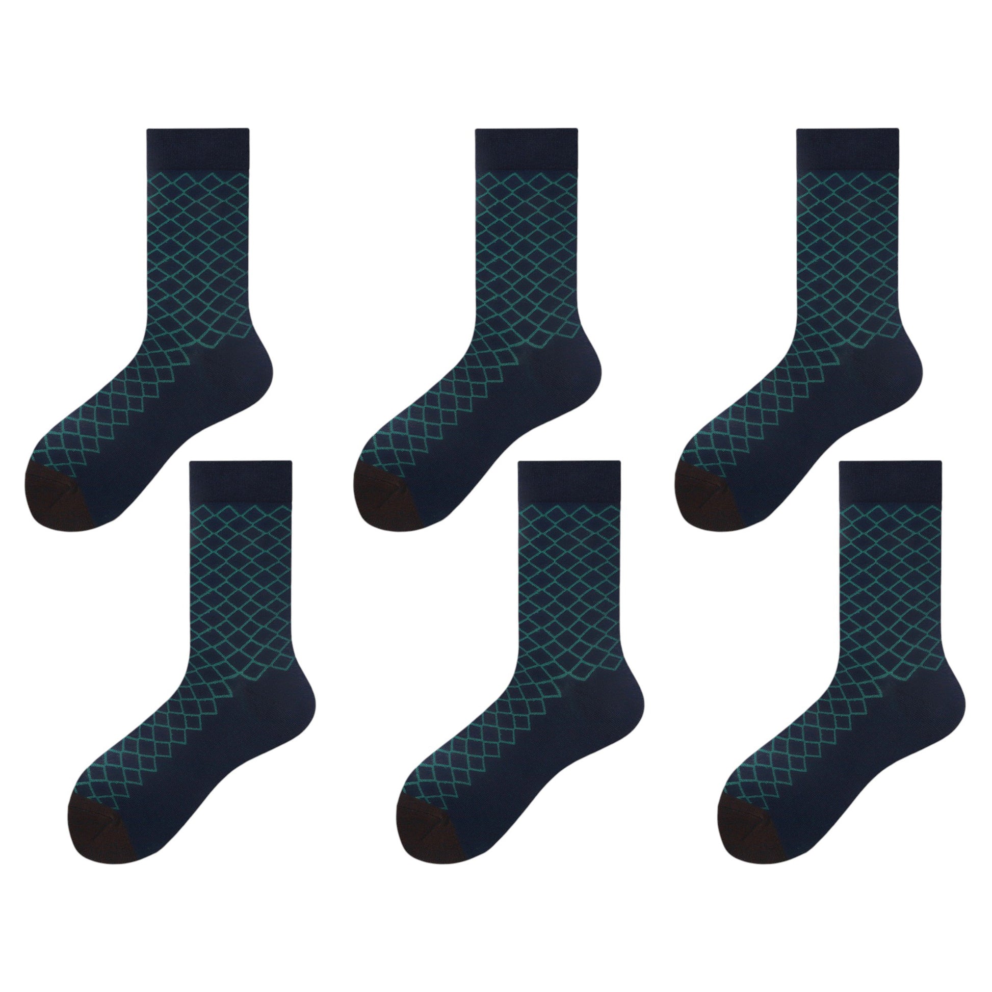 Elevate your sock game with our Men's Socks featuring a striking geometric pattern. These socks blend style and comfort seamlessly, making them a must - have addition to any man's wardrobe. The navy blue base paired with the eye - catching green geometric design adds a sophisticated yet trendy touch, allowing you to express your personal style even with your socks.