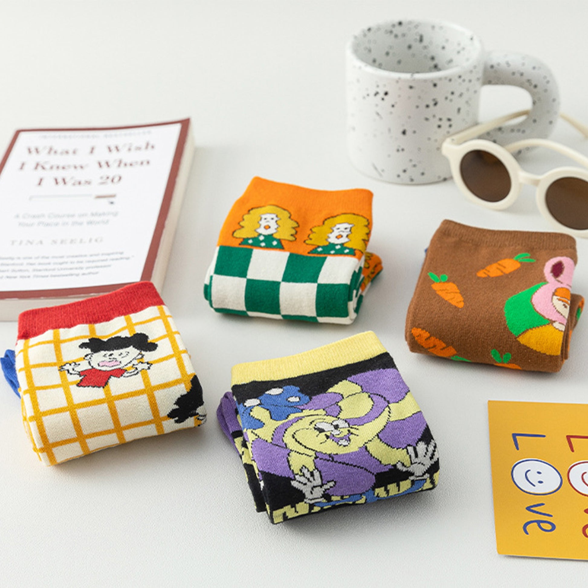 Trendy Cotton Socks 2-Pack Colorful Patterned Casual Design Breathable Soft