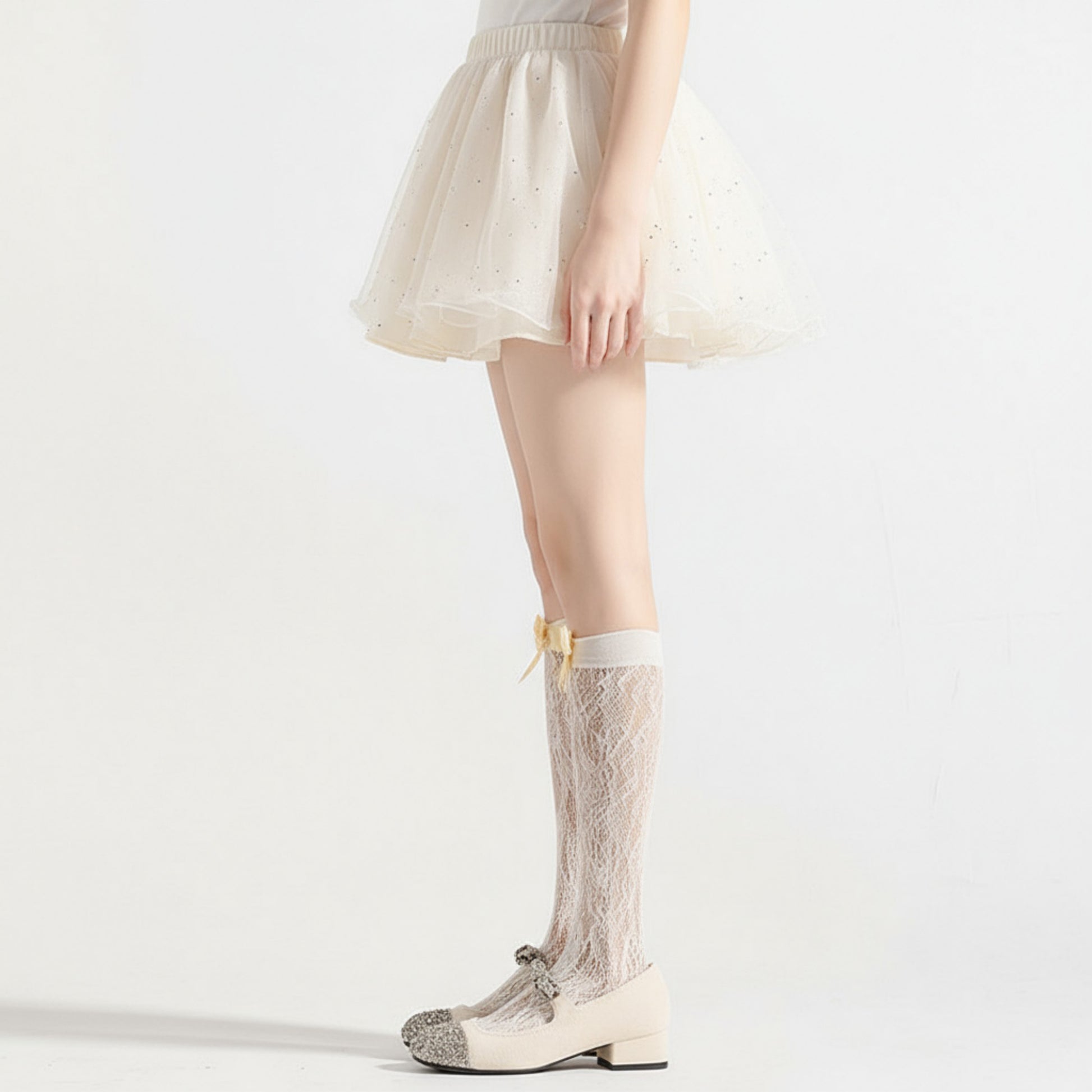 3-Piece Set Knee-High Lace Socks with Bow Accent Detail