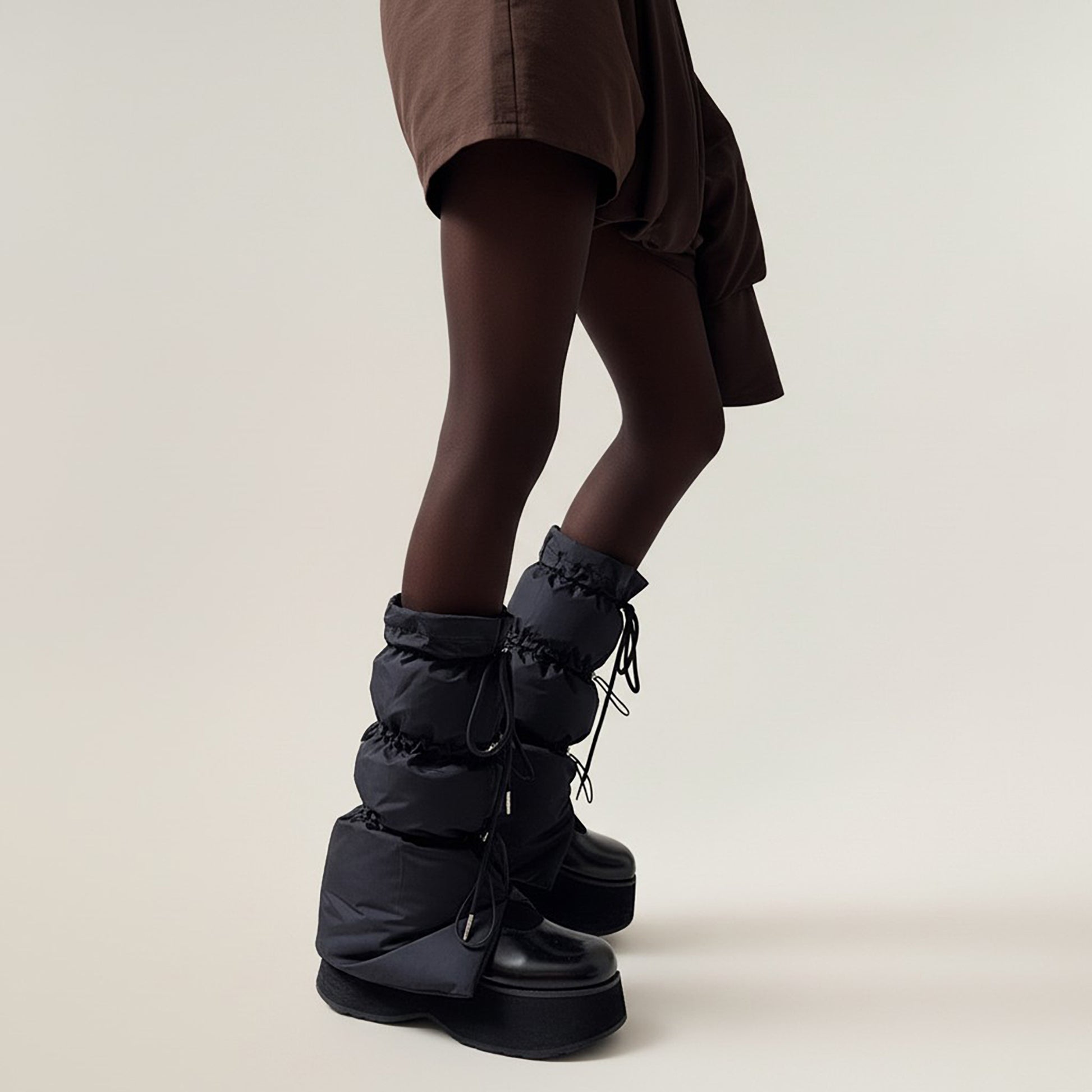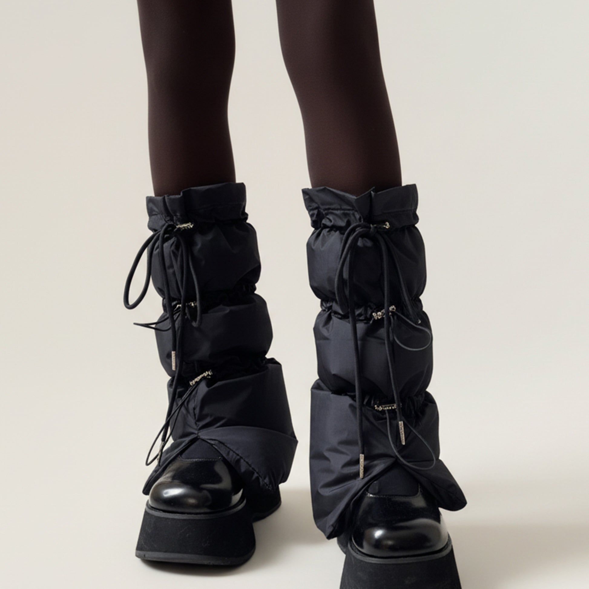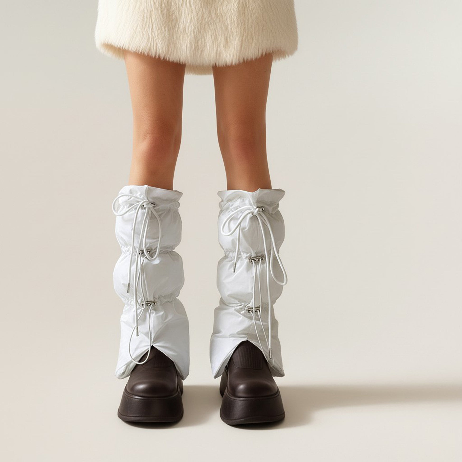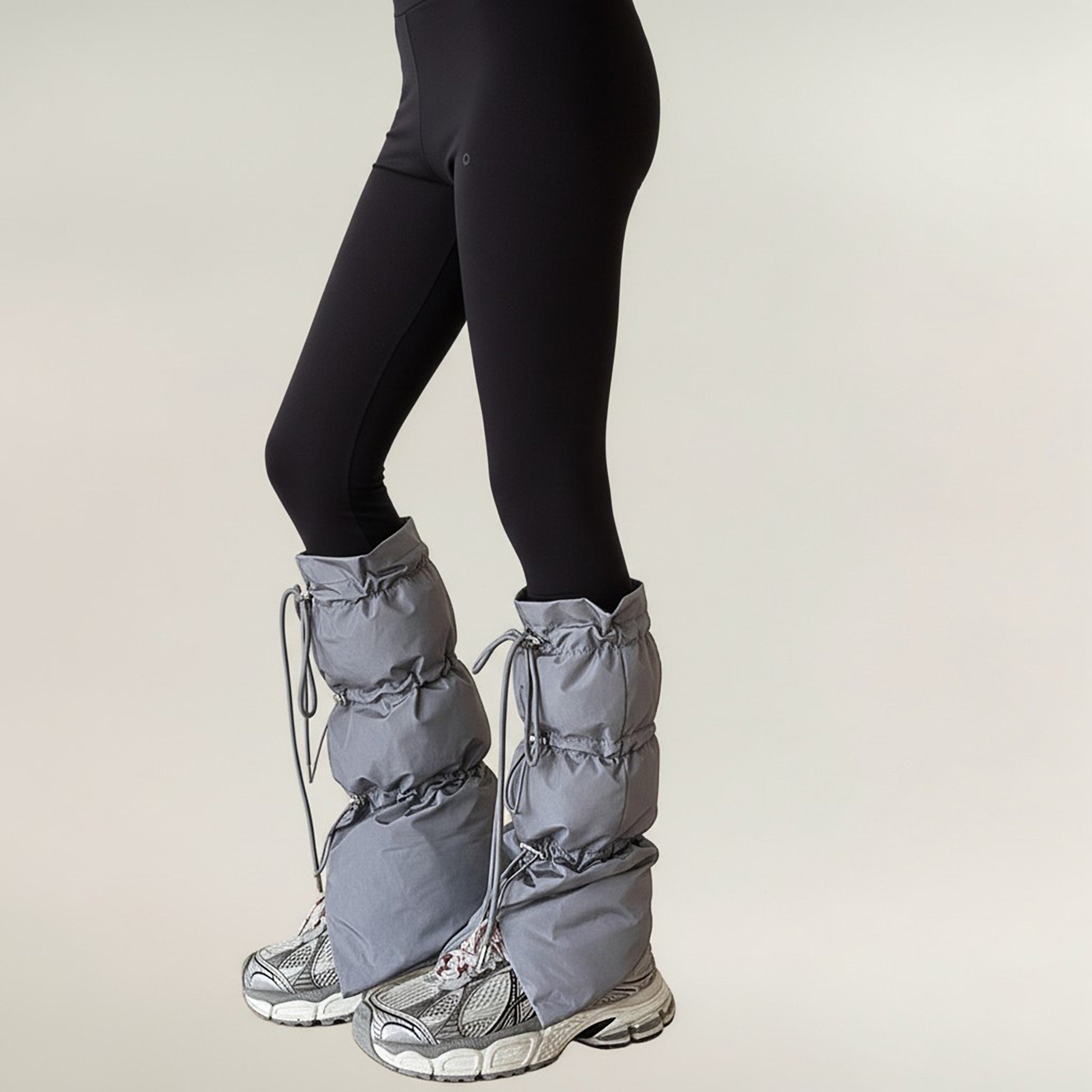 Women's Puffer Style Leg Warmers with Adjustable Drawstring Boot Cover Design