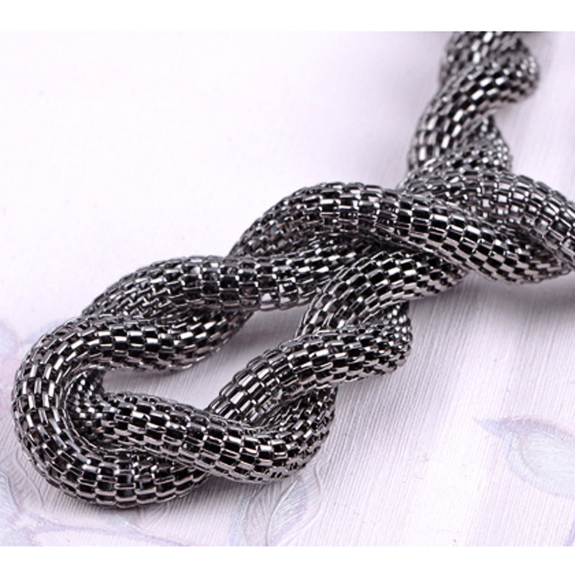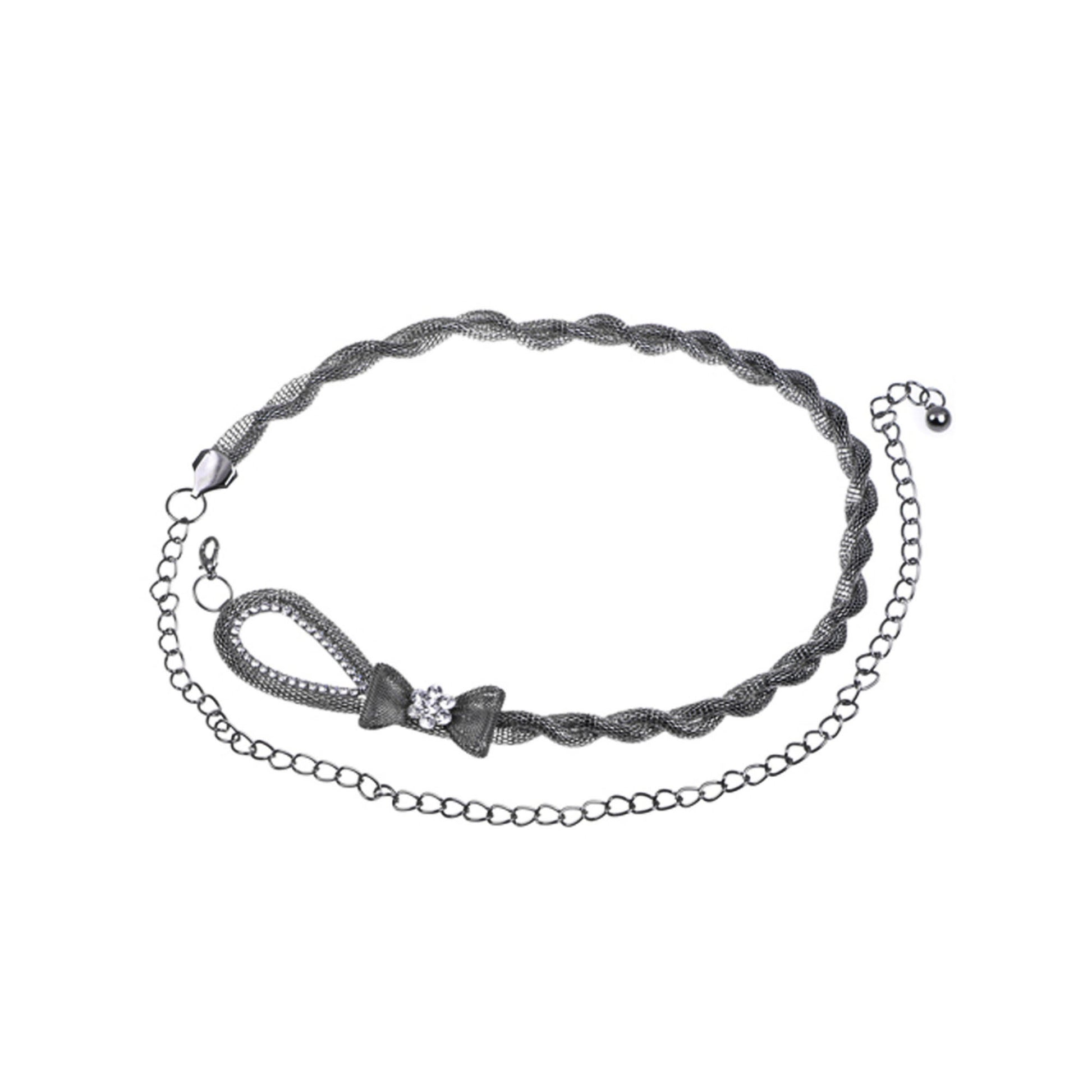 The Anna-Kaci Women's Braided Waist Chain combines modern elegance with playful charm. Featuring a twisted chain design, this piece is accented with a delicate bow centerpiece adorned with sparkling crystals. Its lightweight construction and adjustable clasp make it easy to style with dresses, skirts, or pants. Perfect for layering with other jewelry or wearing alone, this waist chain adds a sophisticated and unique touch to any outfit.