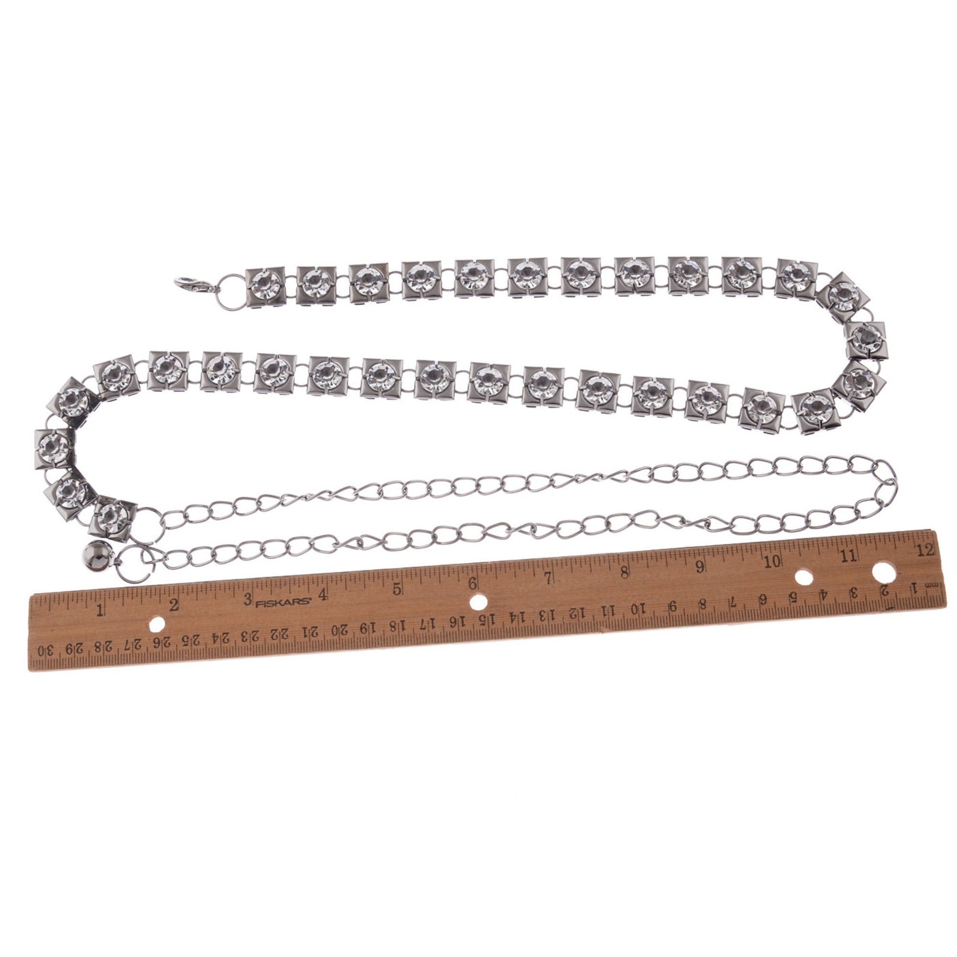 The Anna-Kaci Women's Crystal Square Link Waist Chain is a timeless piece designed to add sparkle and sophistication to any look. Each square link is accented with a radiant crystal, creating a refined shimmer that highlights the waistline. Featuring an adjustable extender for a customizable fit, this waist chain is perfect for elevating both casual and formal outfits. Pair it with dresses, skirts, or high-waisted pants for a polished, eye-catching finish.