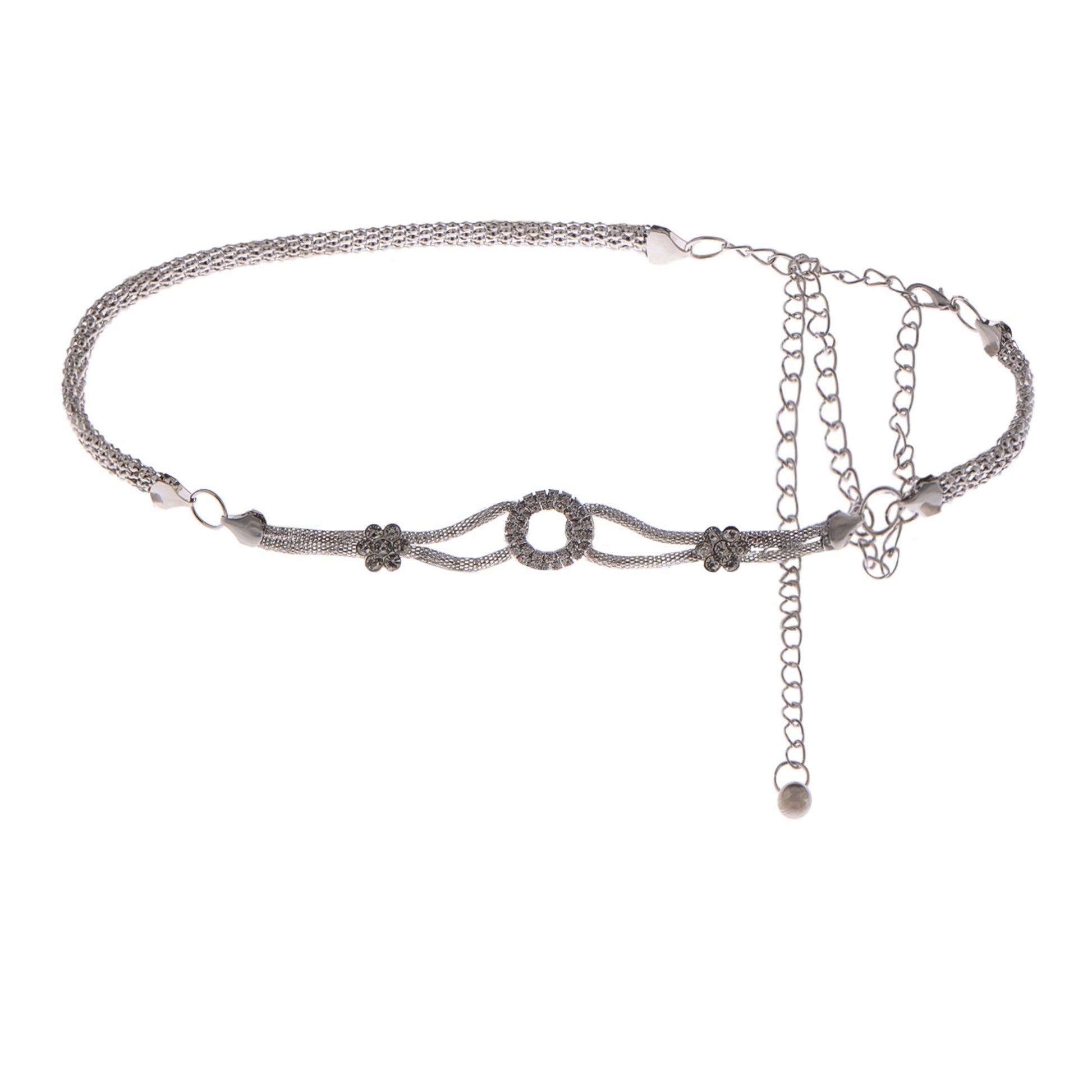 Crystal Circle and Floral Accent Waist Chain Adjustable Belly Jewelry